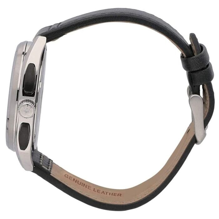 ساعة مازيراتي للرجال أصلية موديل R8871632001 Trimarano لون اسود و استيك جلد طبيعي لون اسود.