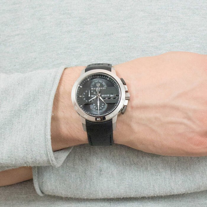 ساعة مازيراتي للرجال أصلية موديل R8871619004 Ingegno لون اسود و استيك جلد طبيعي لون اسود.