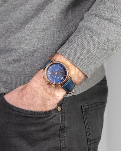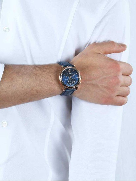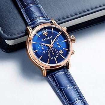 ساعة مازيراتي للرجال اصلية موديل Epoca R8871618007 لون ازرق و استيك جلد طبيعي لون ازرق.