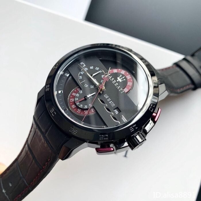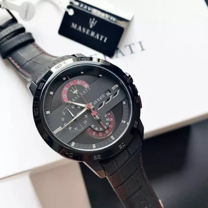 ساعة مازيراتي للرجال أصلية موديل R8871619003 Ingegno لون اسود و استيك جلد طبيعي لون اسود.