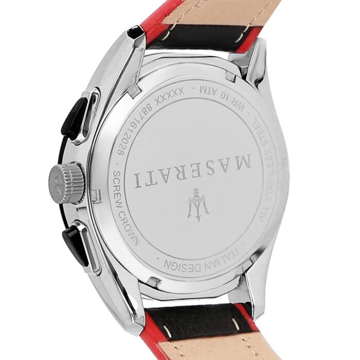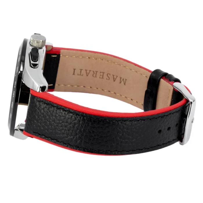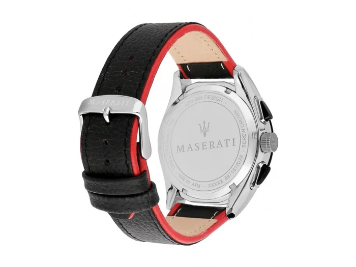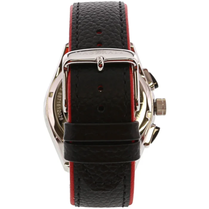 ساعة مازيراتي للرجال أصلية موديل R8871612028 Traguardo لون اسود و استيك جلد طبيعي لون اسود.