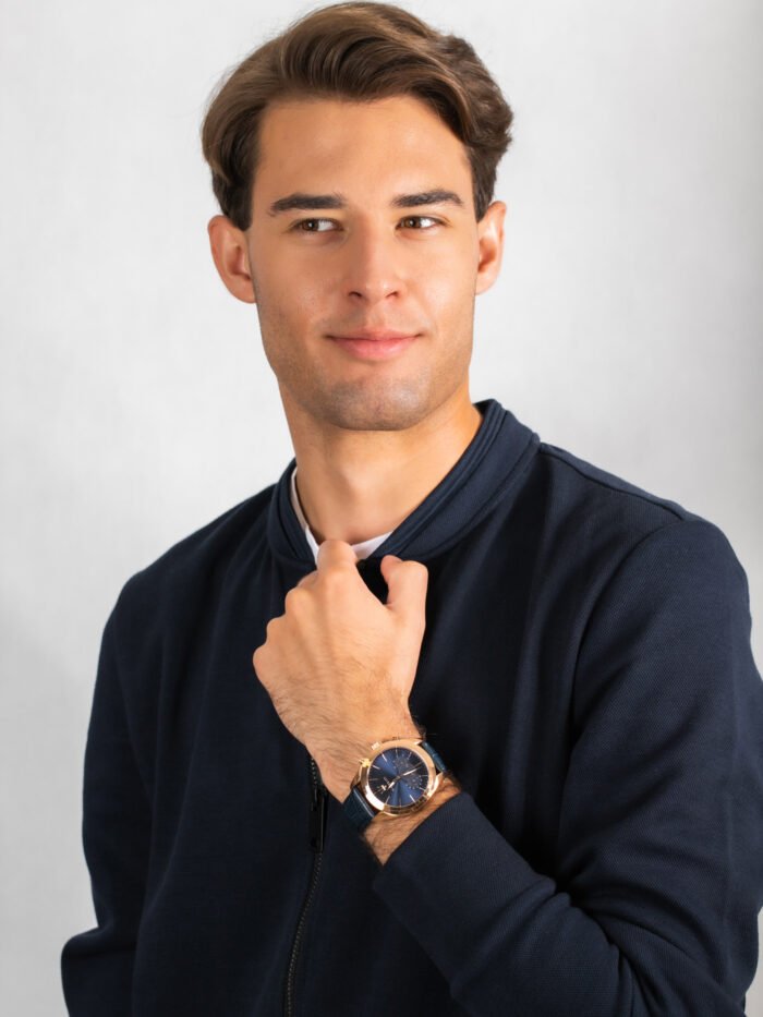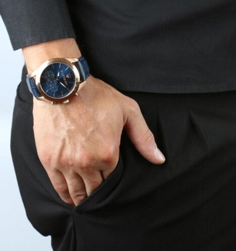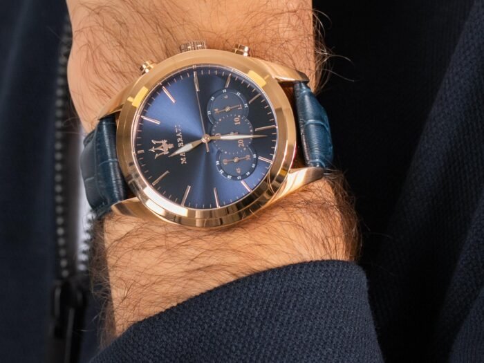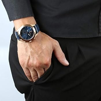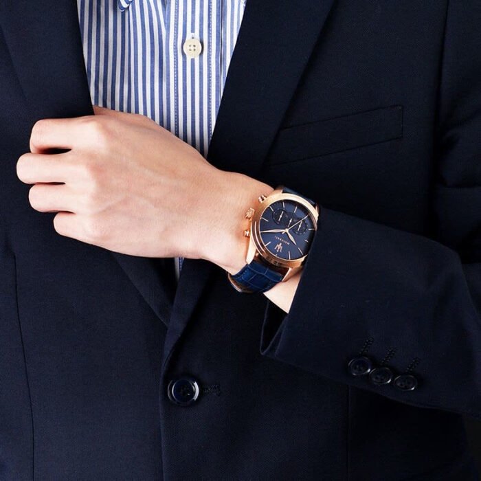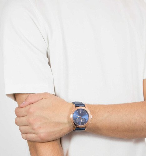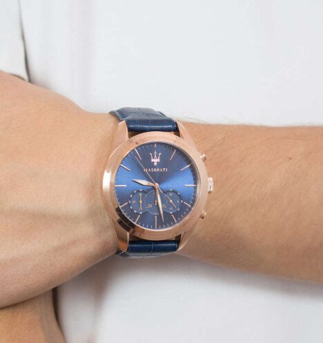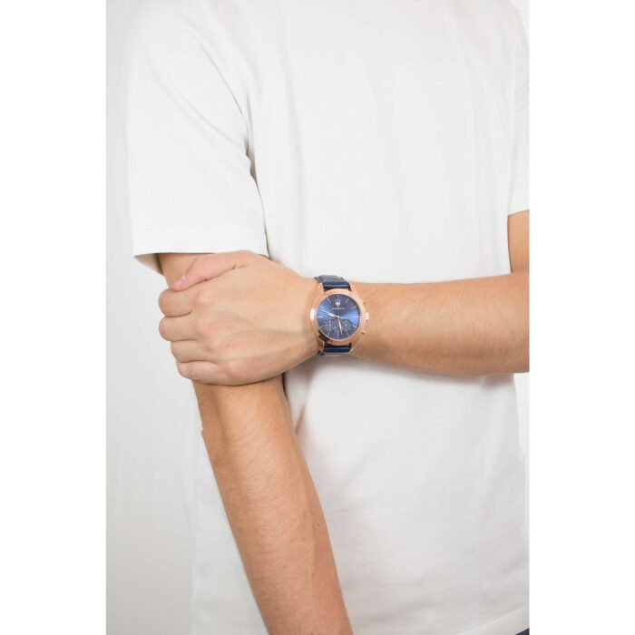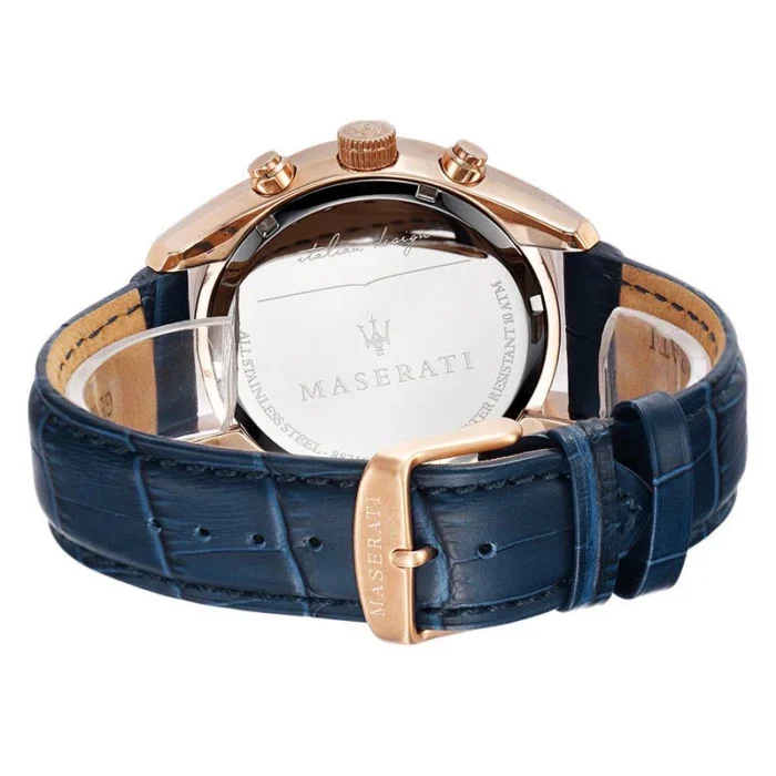 ساعة مازيراتي للرجال اصلية موديل Traguardo R8871612015 لون ازرق و استيك جلد طبيعي لون ازرق.