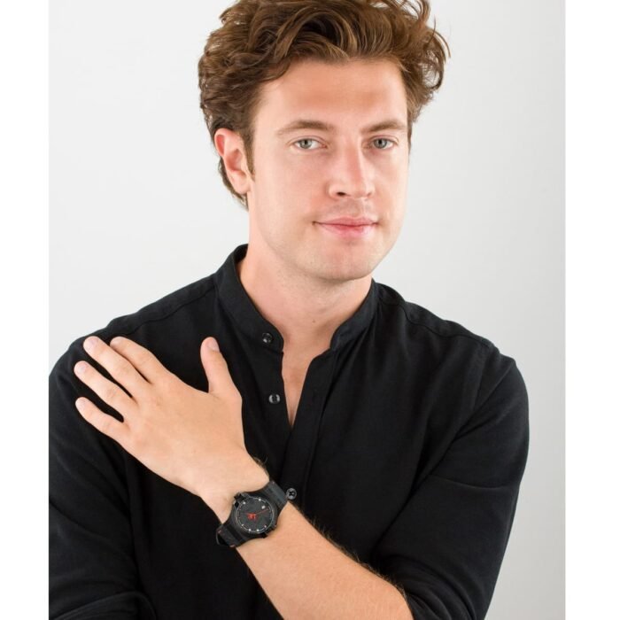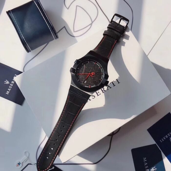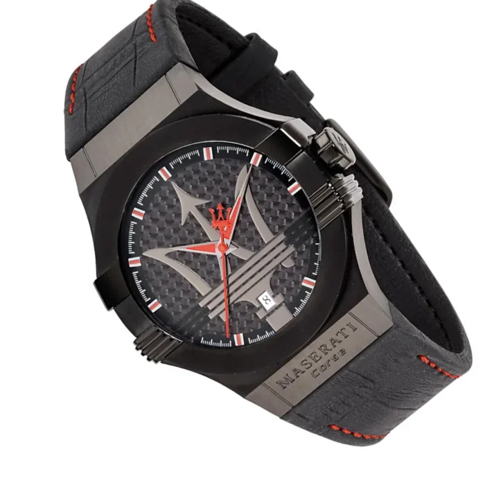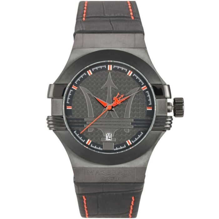 ساعة مازيراتي للرجال أصلية موديل R8851108010 Potenza لون اسود و استيك جلد طبيعي لون اسود.