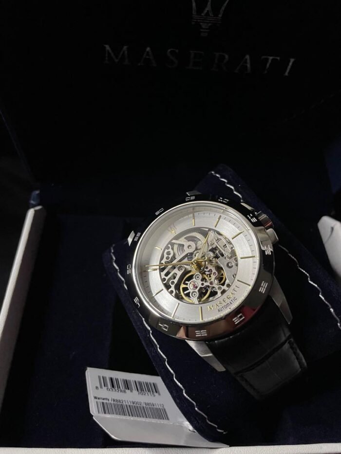 ساعة مازيراتي للرجال أصلية موديل R8821119002 Ingegno لون فضي و استيك جلد طبيعي لون اسود.