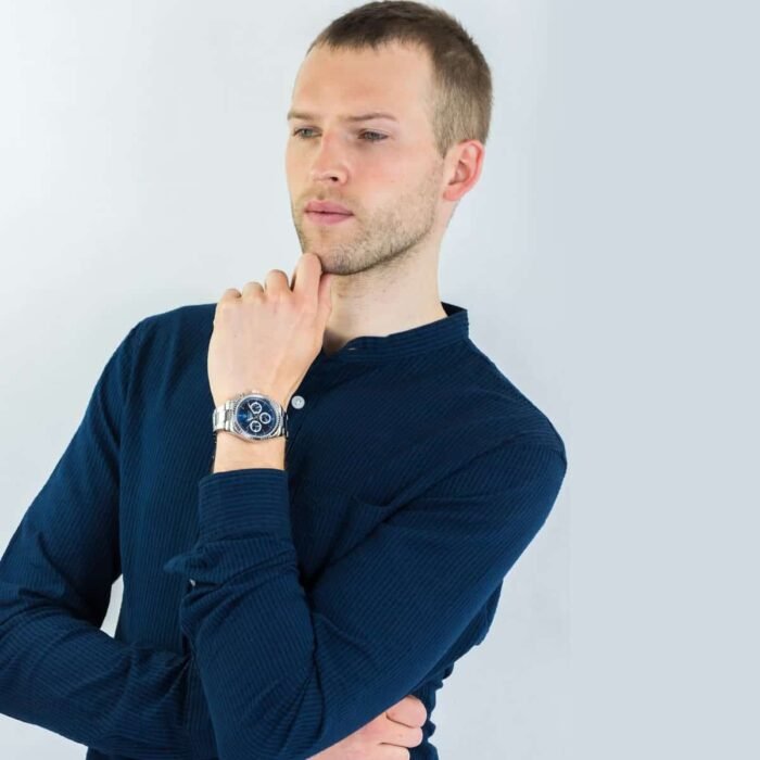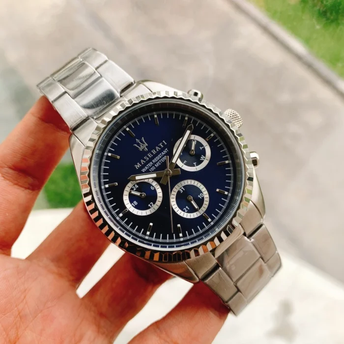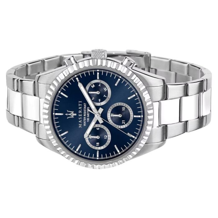 ساعة مازيراتي للرجال أصلية موديل R8853100022 Competizione لون ازرق و استيك معدن ستانلس لون فضي.
