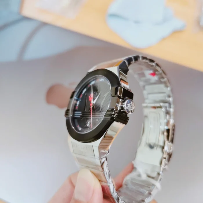 ساعة مازيراتي للرجال أصلية موديل R8853108001 Potenza لون اسود و استيك معدن ستانلس لون فضي.
