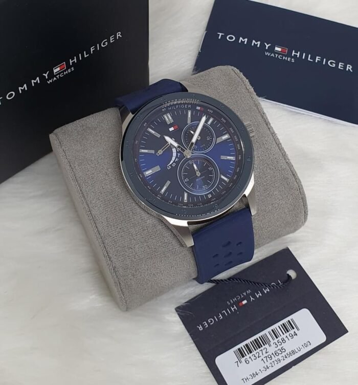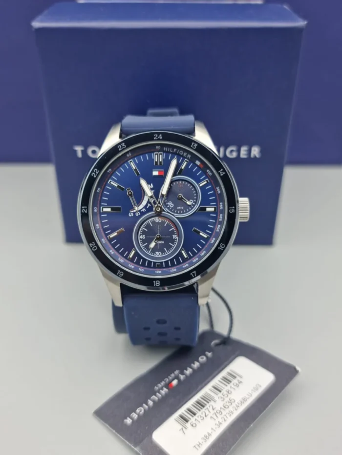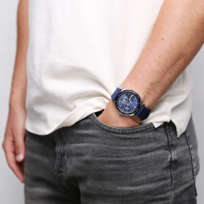 ساعة تومي هيلفيغر للرجال اصلية موديل Austin 1791635 لون ازرق واستيك سيليكون مطاط لون ازرق.