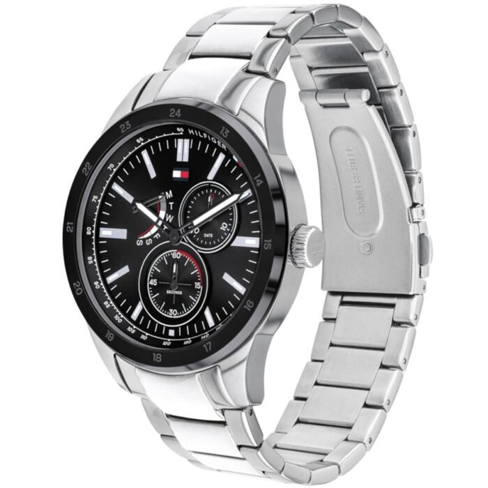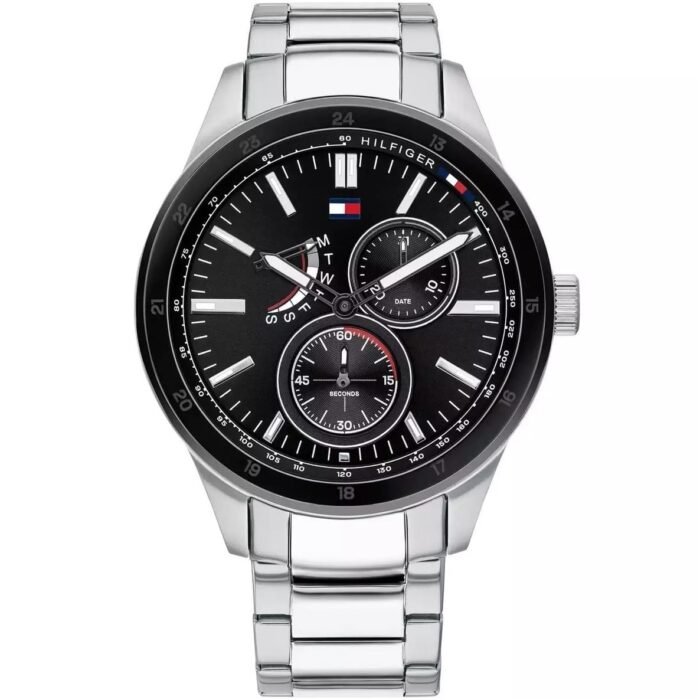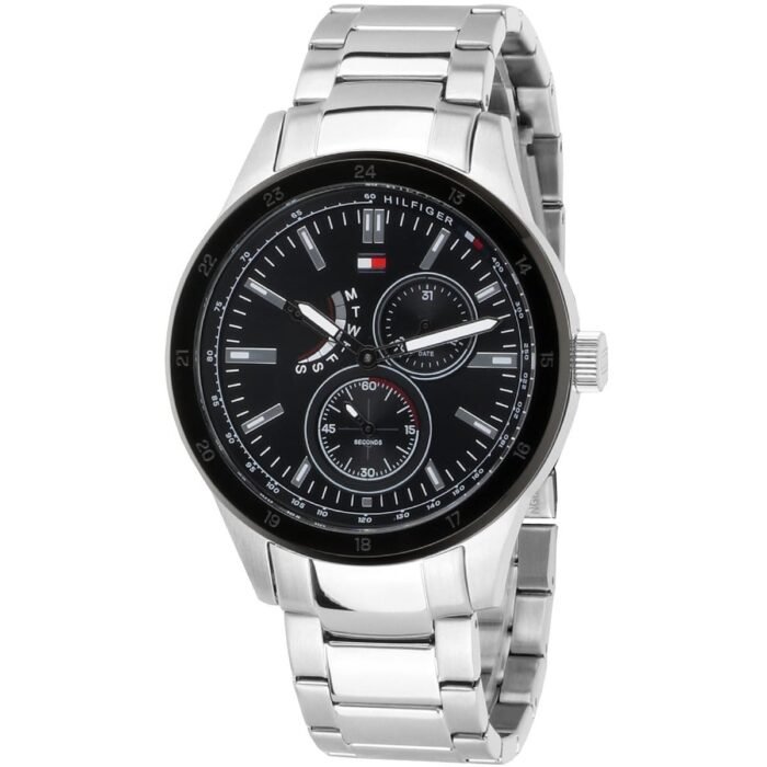 ساعة تومي هيلفيغر للرجال اصلية موديل Austin 1791639 لون اسود واستيك معدن ستانلس لون فضي.