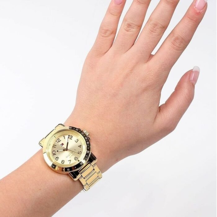 ساعة تومي هيلفيغر للنساء اصلية موديل Champagne 1781395 لون ذهبي واستيك معدن ستانلس لون ذهبي.