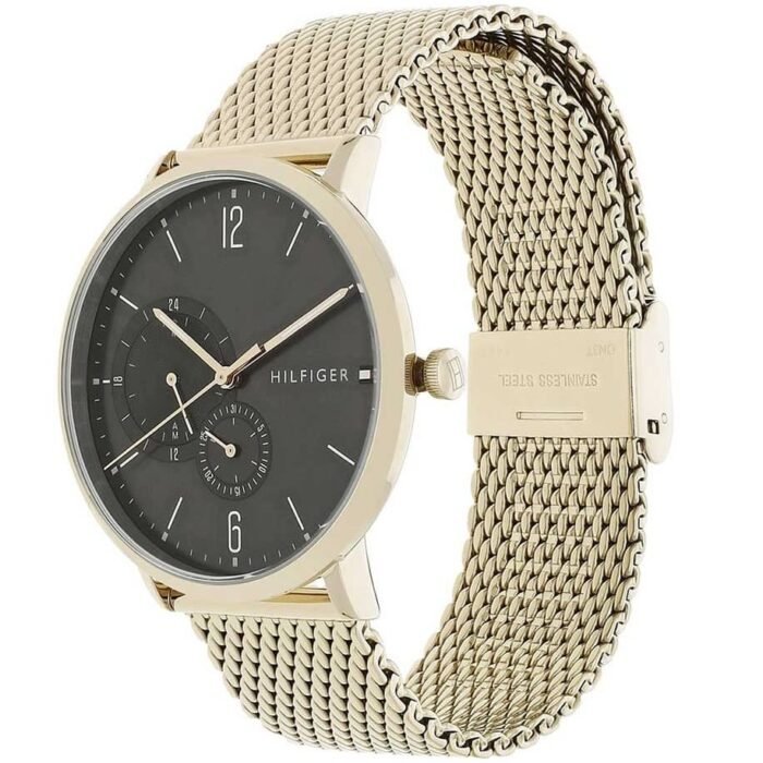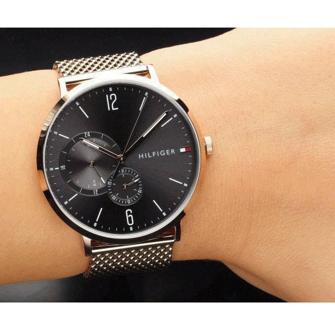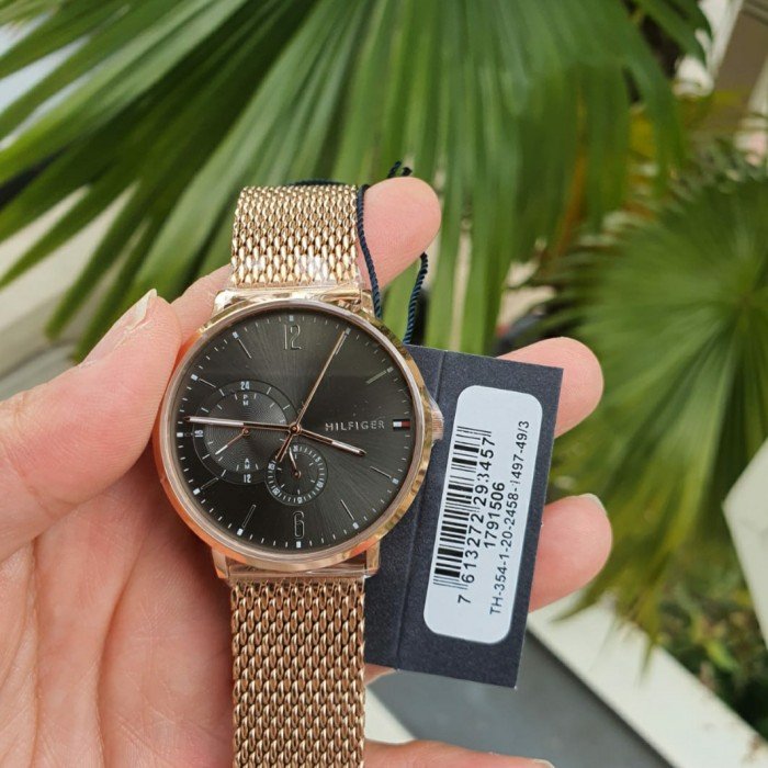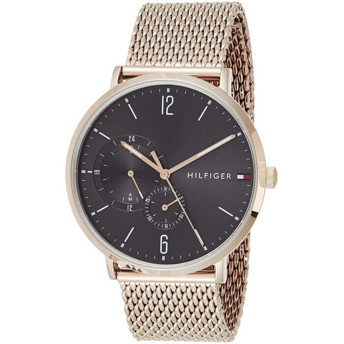 ساعة تومي هيلفيغر للرجال اصلية موديل Brooklyn 1791506 لون رمادي واستيك معدن ستانلس لون روز جولد.