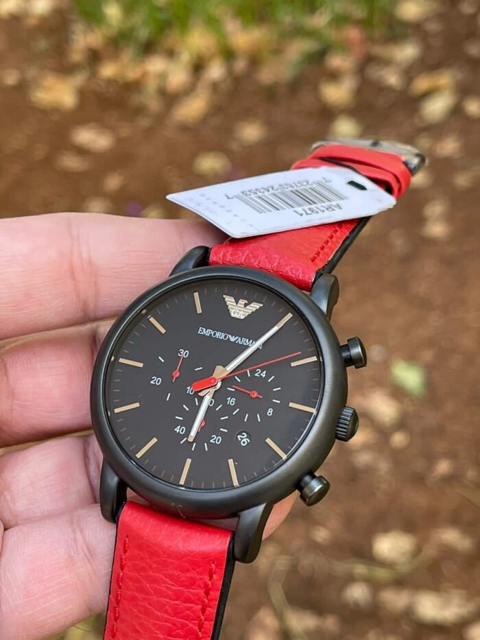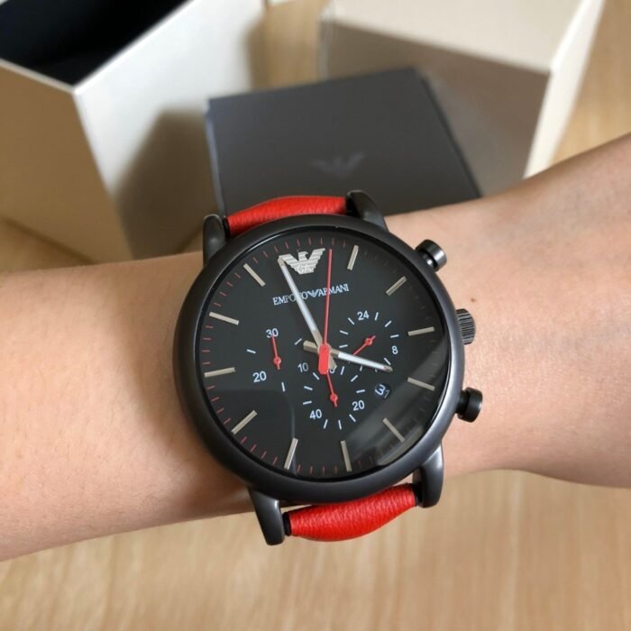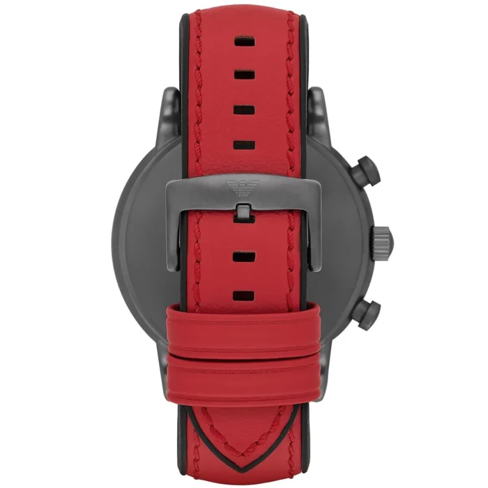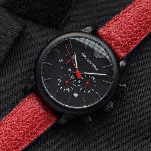 ساعة امبريو ارماني اصلية للرجال موديل AR1971 لون اسود و استيك جلد طبيعي لون احمر.