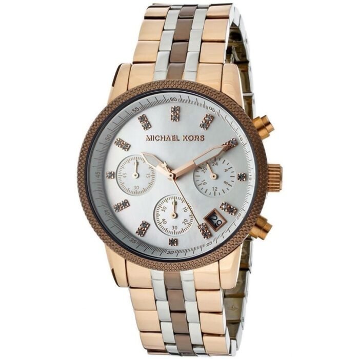 ساعة مايكل كورس للنساء اصلية موديل Ritz MK5642 لون ابيض واستيك معدن ستانلس متعدد الالوان.