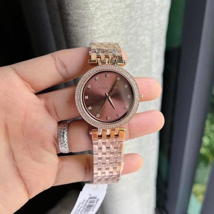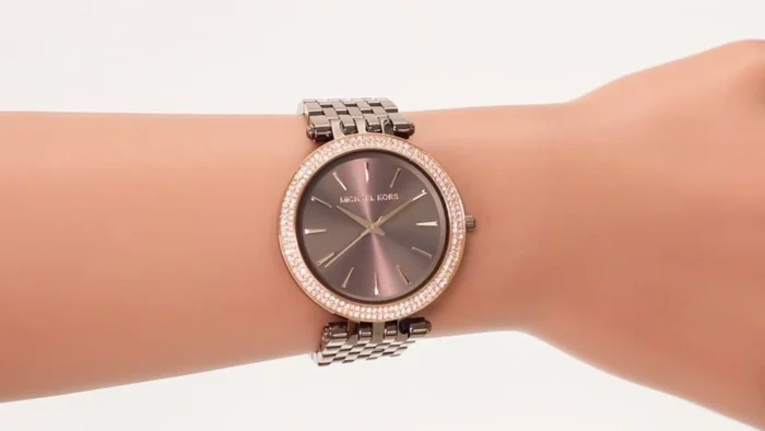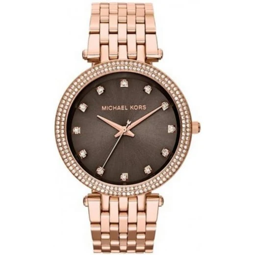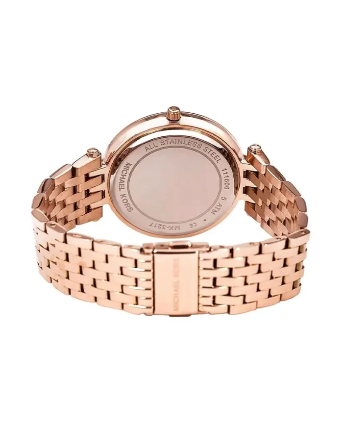 ساعة مايكل كورس للنساء اصلية موديل MK3217 لون بني واستيك معدن ستانلس لون روز جولد.