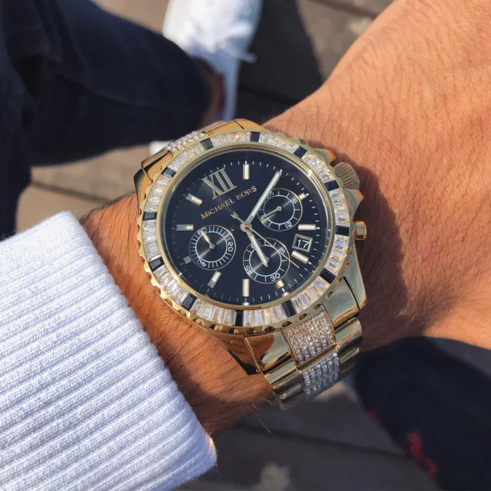 ساعة مايكل كورس للرجال اصلية موديل MK5828 لون اسود واستيك معدن ستانلس لون ذهبي.