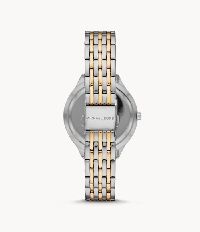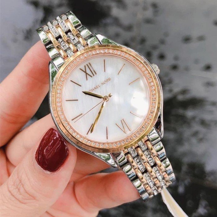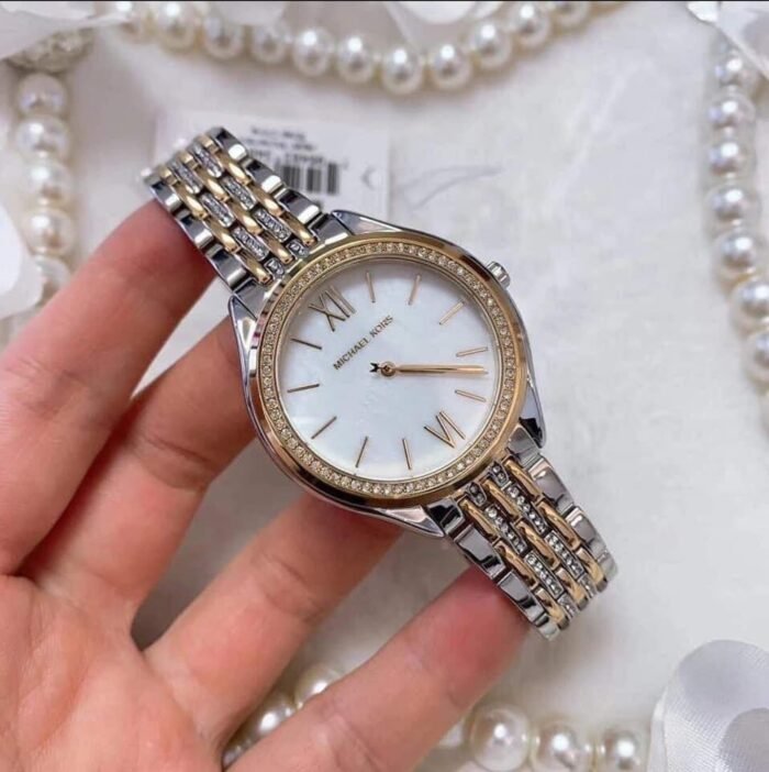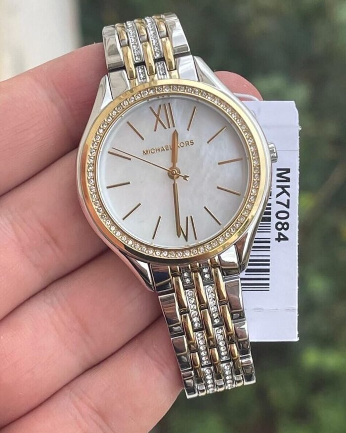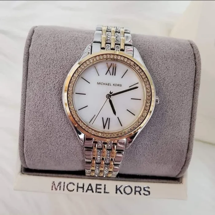 ساعة مايكل كورس للنساء اصلية موديل MK7084 لون ابيض واستيك معدن ستانلس لون فضي * ذهبي.