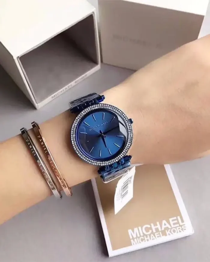 ساعة مايكل كورس للنساء اصلية موديل MK3417 لون ازرق واستيك معدن ستانلس لون ازرق.