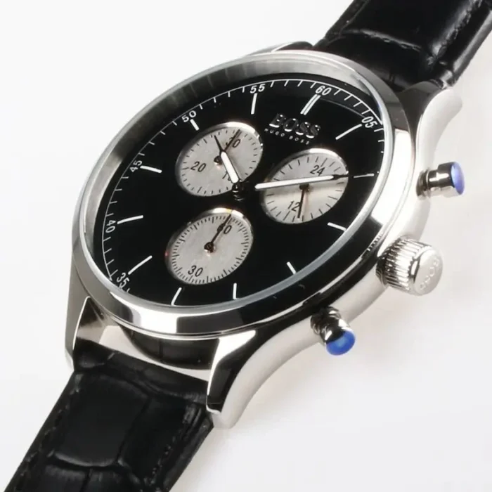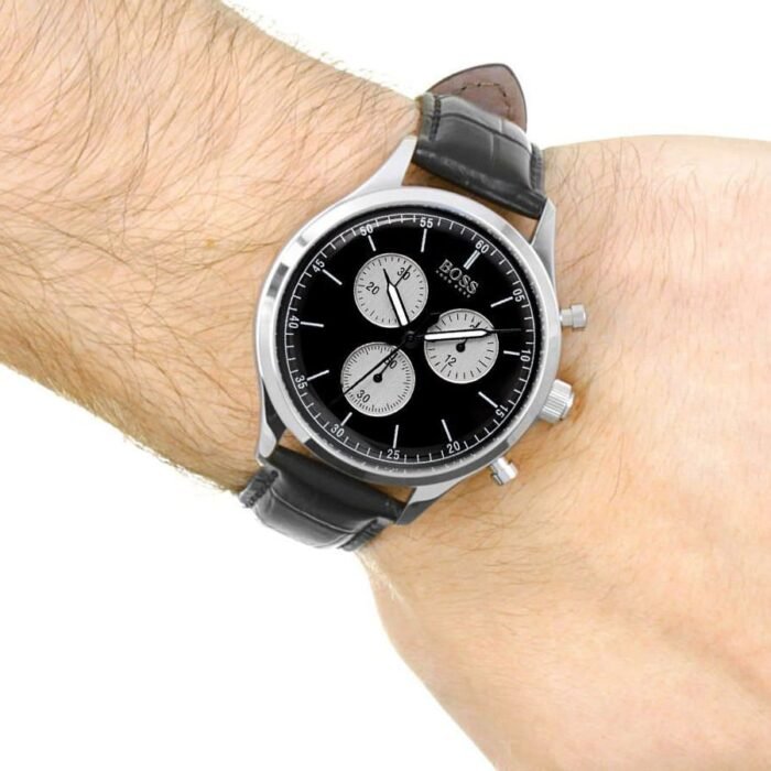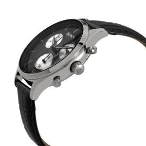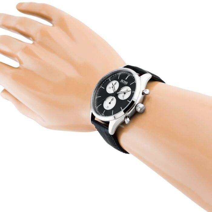 ساعة هوجو بوس للرجال اصلية موديل Companion 1513543 لون اسود واستيك جلد طبيعي لون اسود.