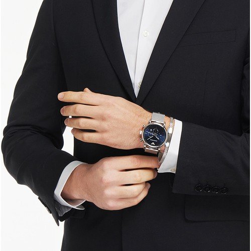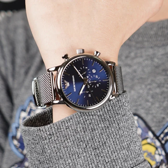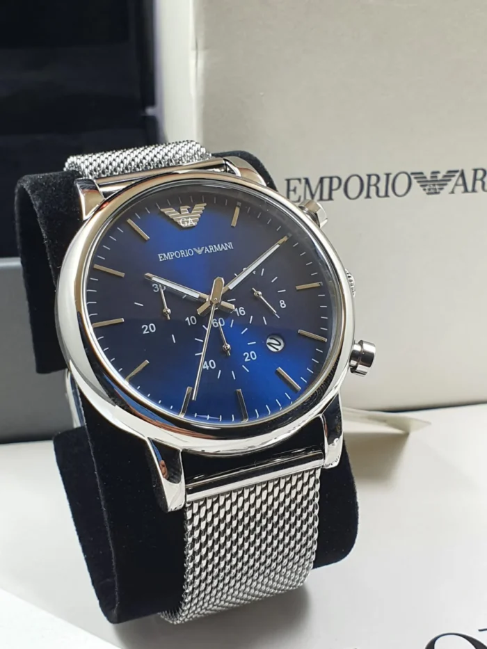 ساعة امبوريو ارماني للرجال أصلية موديل Luigi AR80038 لون ازرق و استيك معدن ستانلس لون فضي.