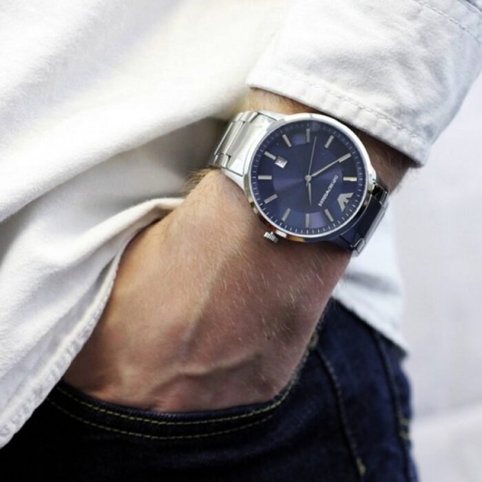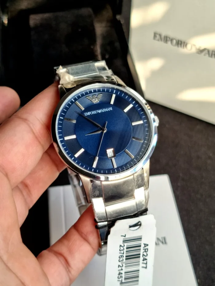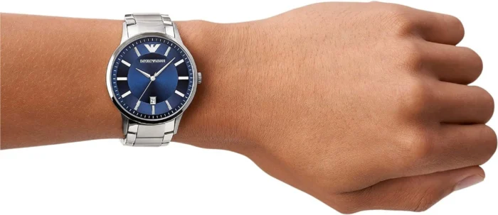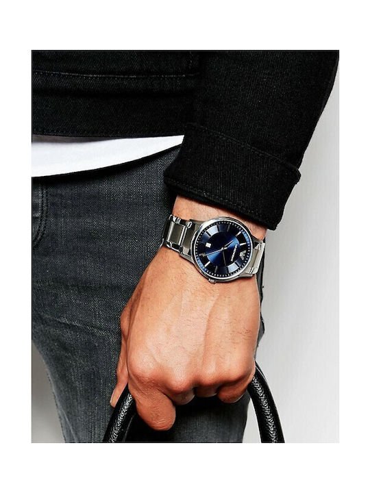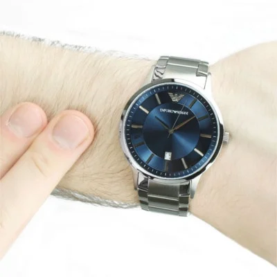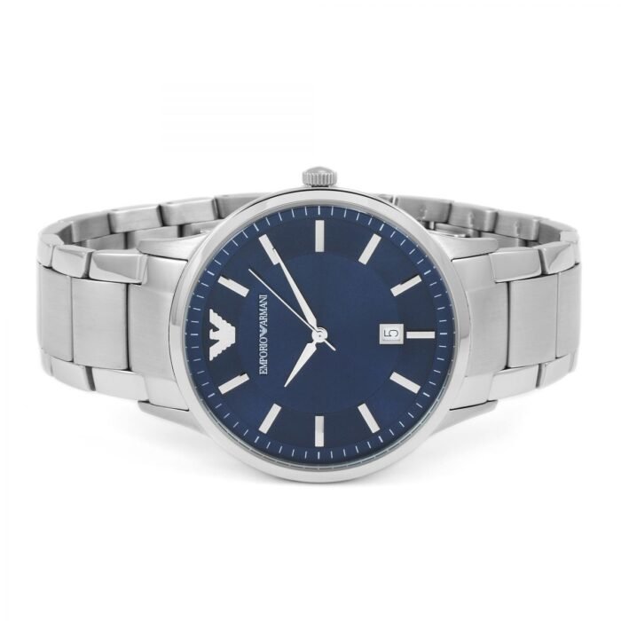 ساعة امبوريو ارماني للرجال اصلية موديل Renato AR2477 لون ازرق واستيك معدن ستانلس لون فضي.