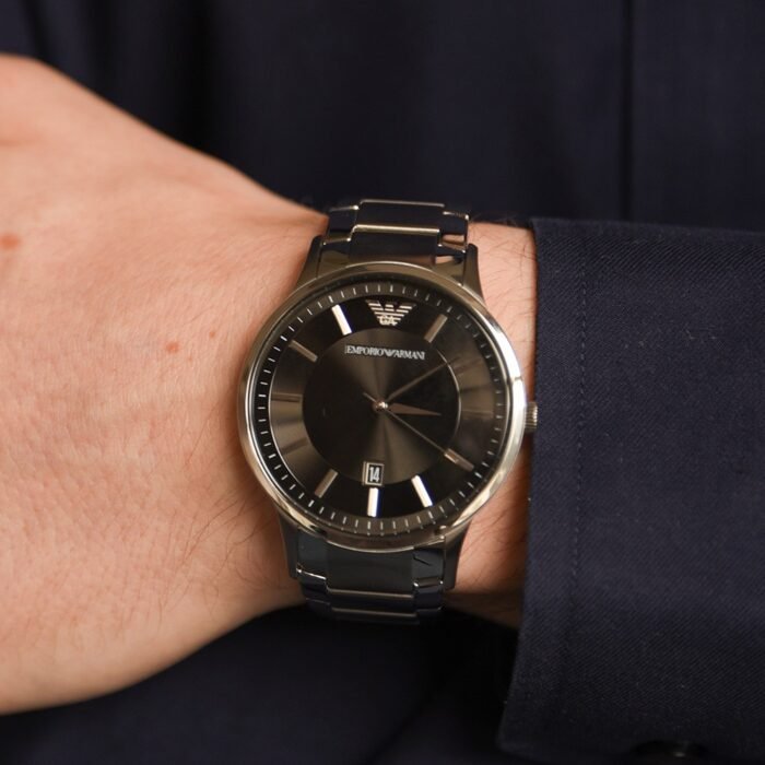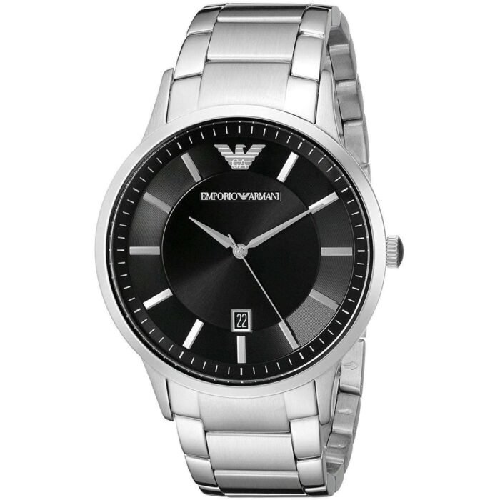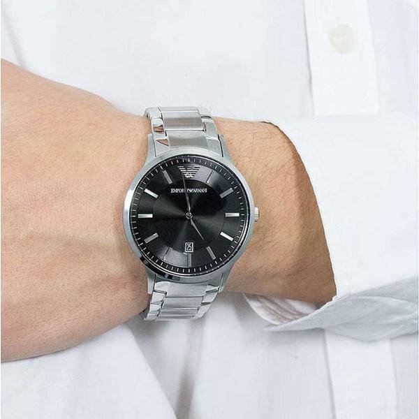 ساعة امبوريو ارماني للرجال اصلية موديل Renato AR2457 لون اسود واستيك معدن ستانلس لون فضي.