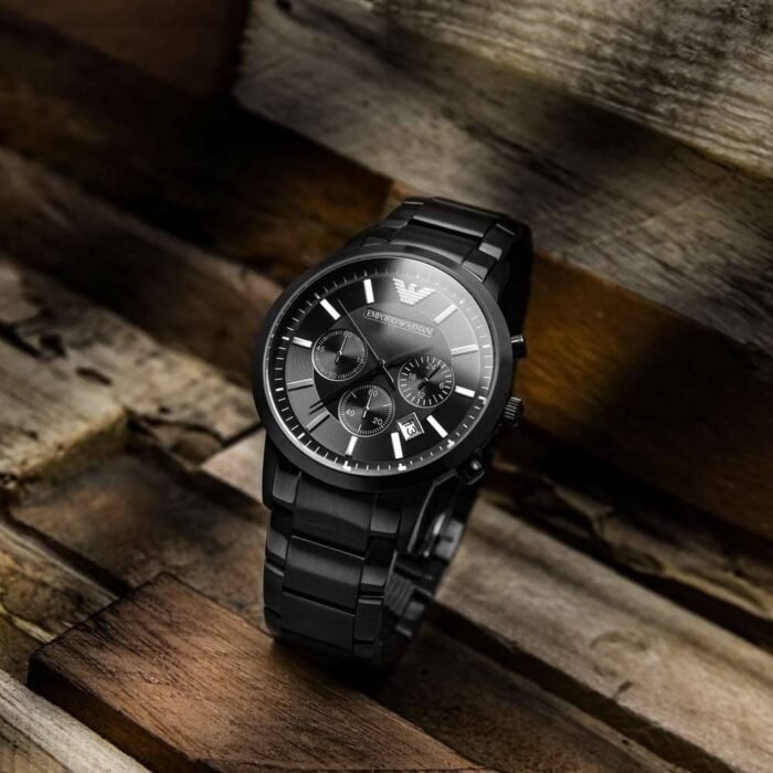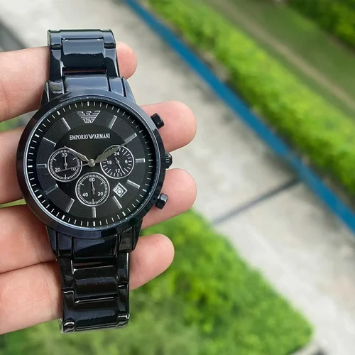 ساعة امبوريو ارماني للرجال اصلية موديل Renato AR2453 لون اسود واستيك معدن ستانلس لون اسود.