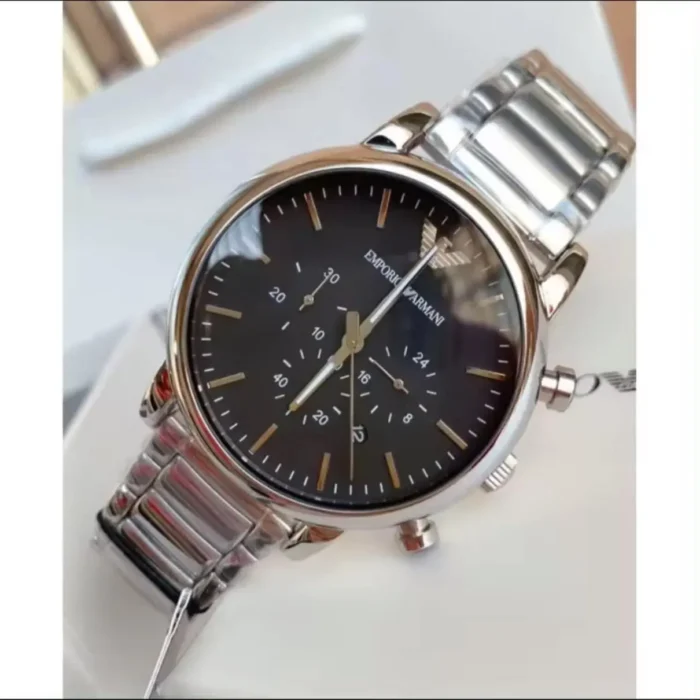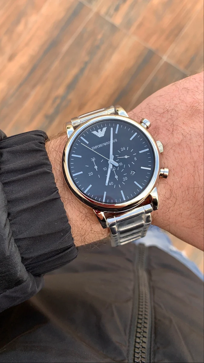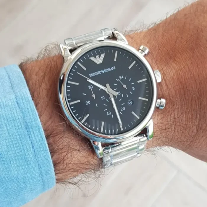 ساعة امبوريو ارماني للرجال اصلية موديل Luigi AR1894 لون اسود واستيك معدن ستانلس لون فضي.