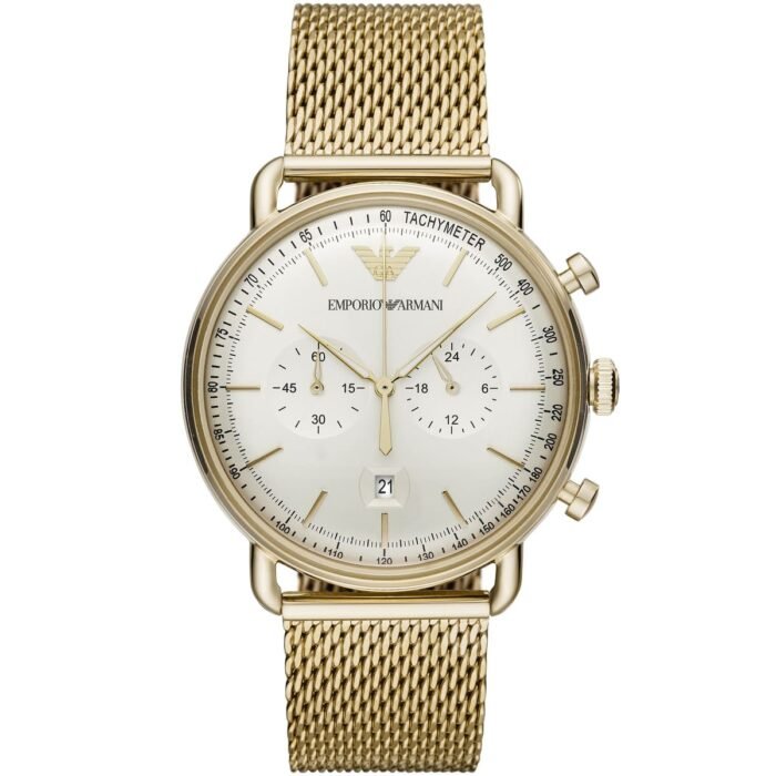 ساعة امبوريو ارماني للرجال أصلية موديل Aviator AR11315 لون ابيض و استيك معدن ستانلس لون ذهبي.