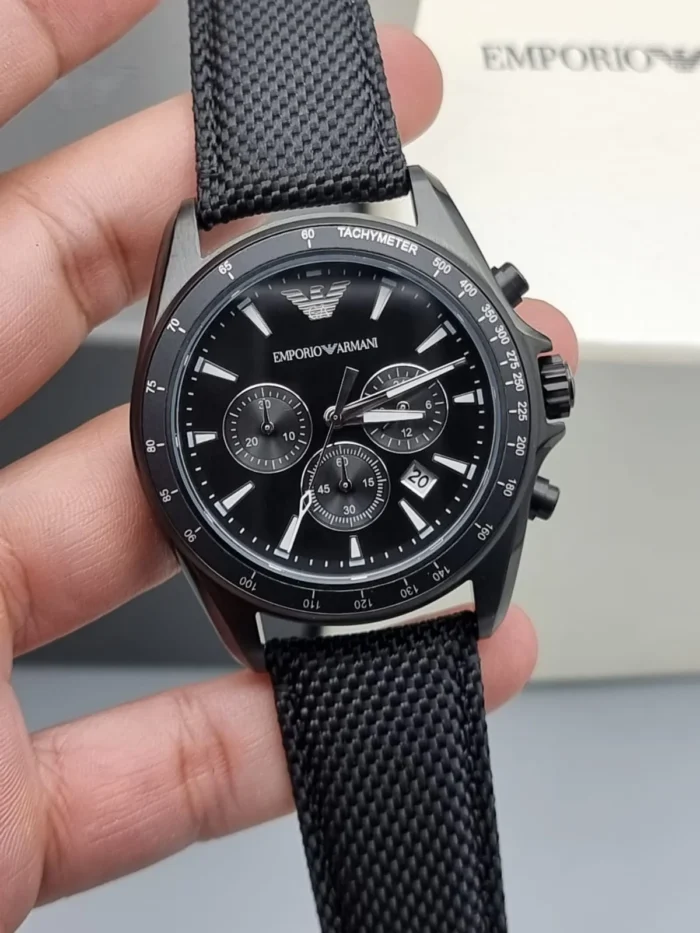 ساعة امبوريو ارماني للرجال أصلية موديل Sigma AR6131 لون اسود و استيك الياف صناعية لون اسود.