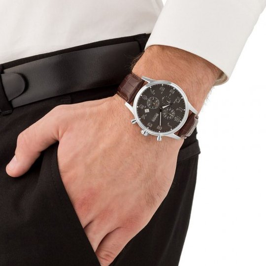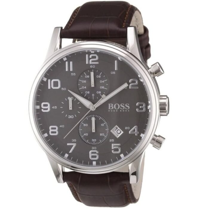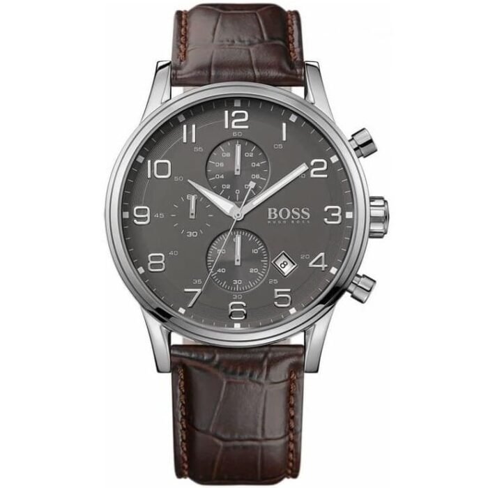 ساعة هوجو بوس للرجال اصلية موديل Aeroliner 1512570 لون رمادي واستيك جلد طبيعي لون بني.