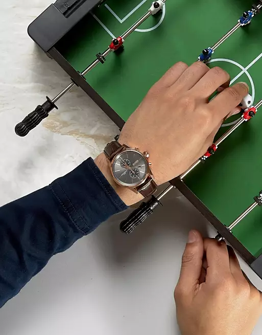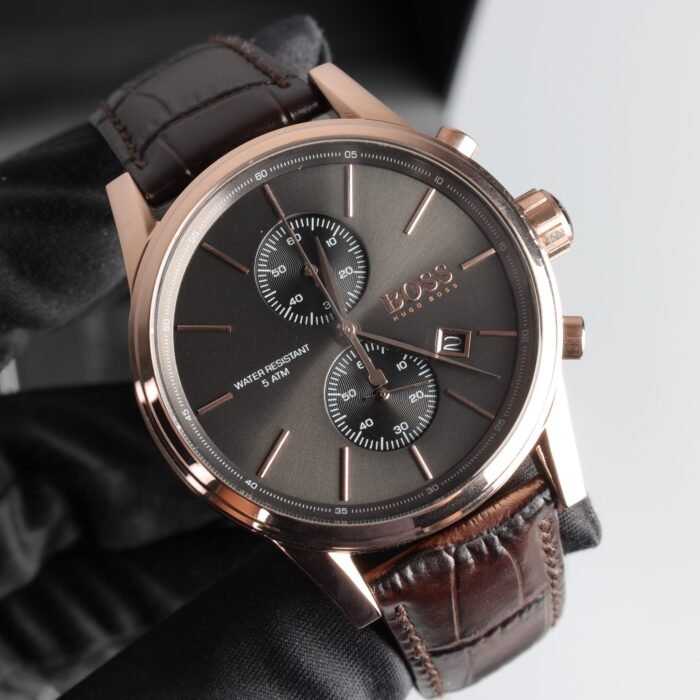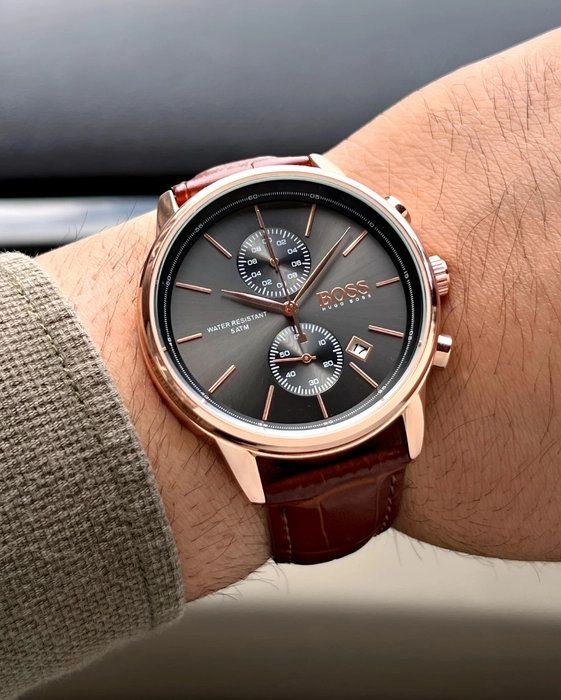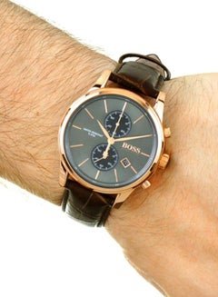 ساعة هوجو بوس للرجال اصلية موديل Jet 1513281 لون رمادي واستيك جلد طبيعي لون بنى.