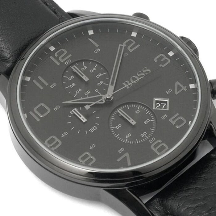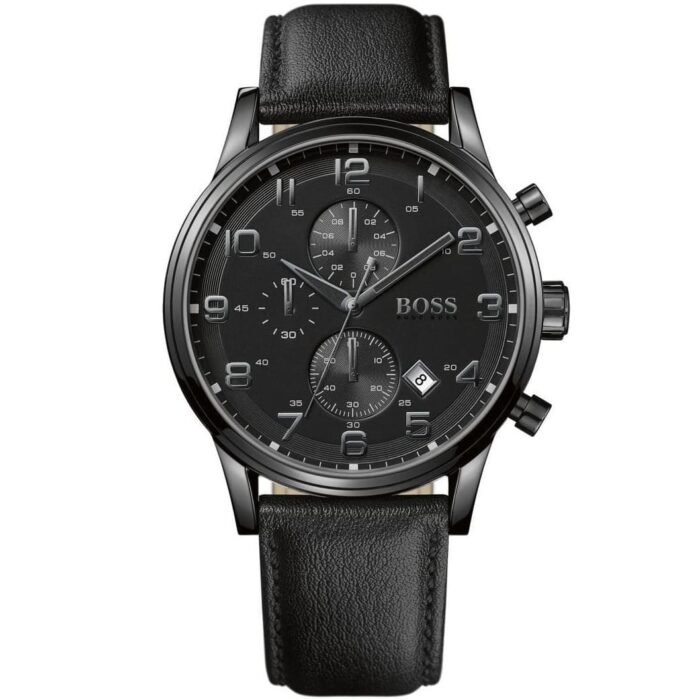 ساعة هوجو بوس للرجال اصلية موديلAeroliner 1512567 لون اسود واستيك جلد طبيعي لون اسود.