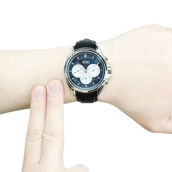 ساعة هوجو بوس للرجال اصلية موديل Driver 1512882 لون ازرق واستيك جلد طبيعي لون اسود