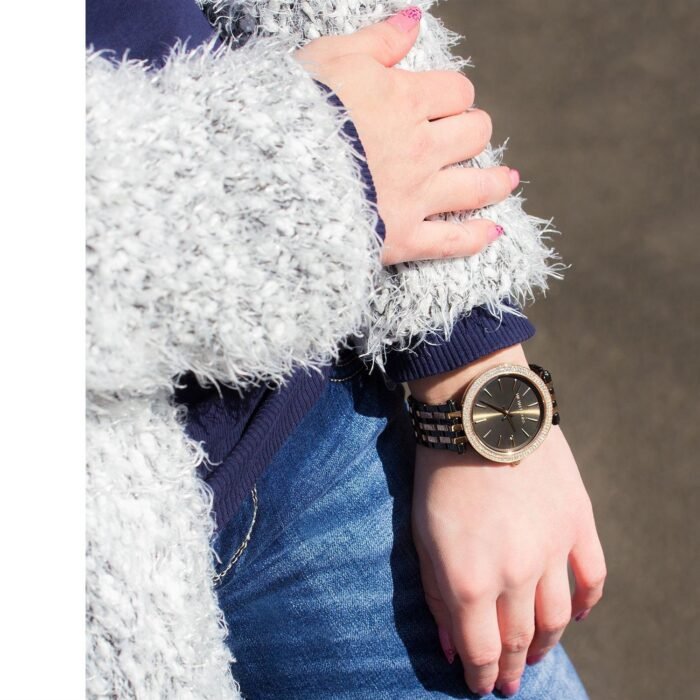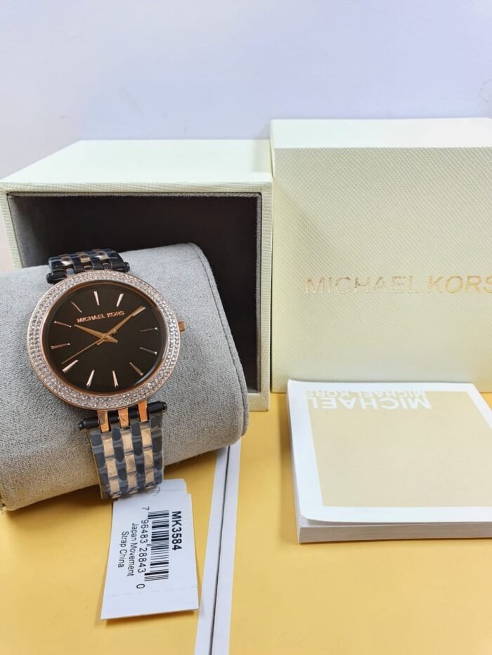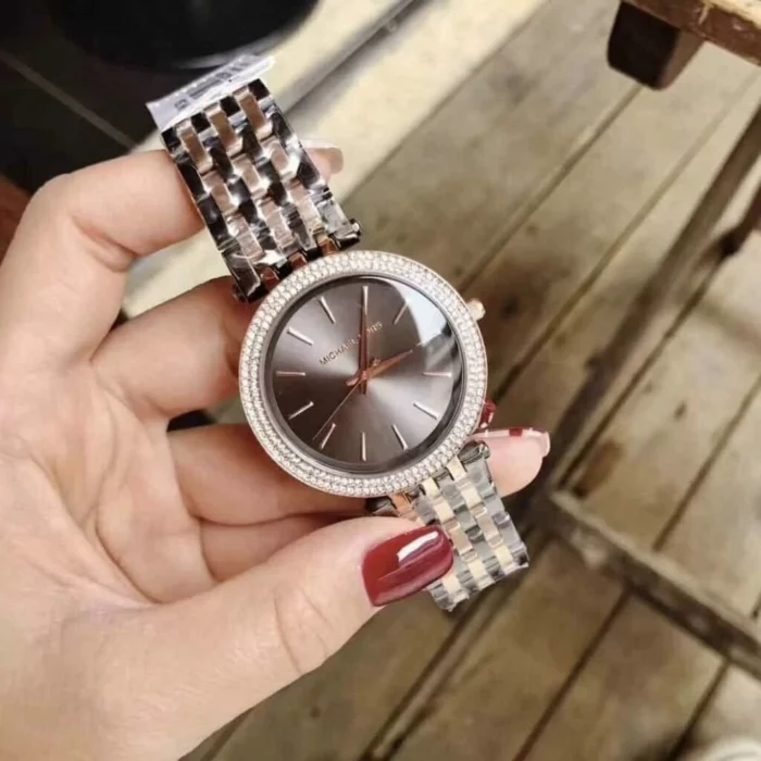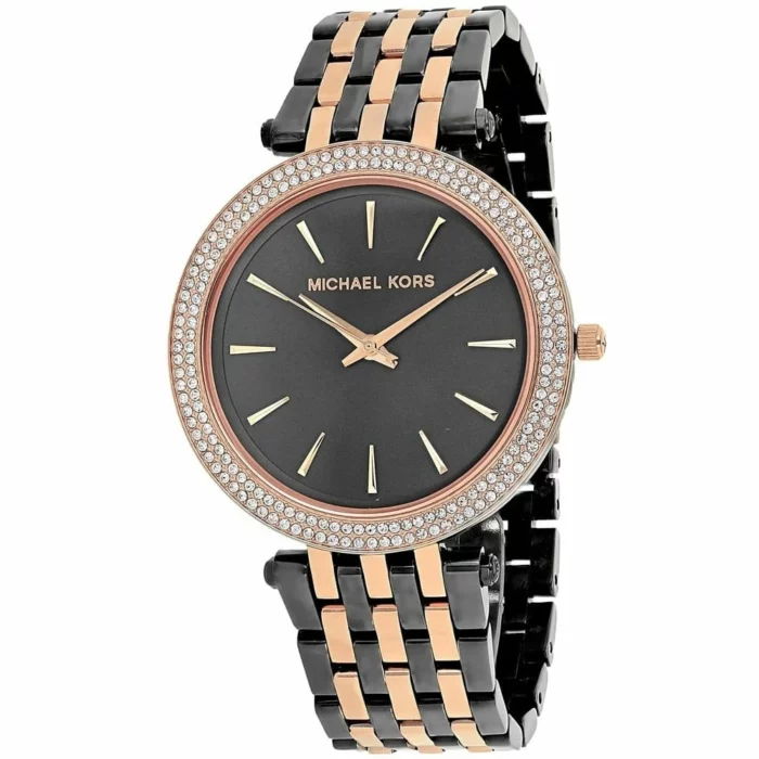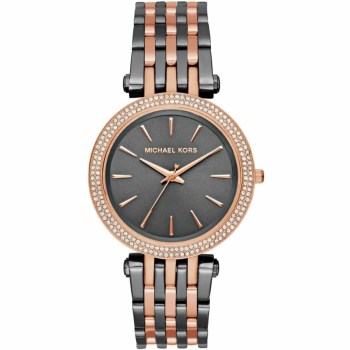 ساعة مايكل كورس للنساء اصلية موديل Darci MK3584 لون رمادي واستيك معدن ستانلس لون رمادي * روز جولد.