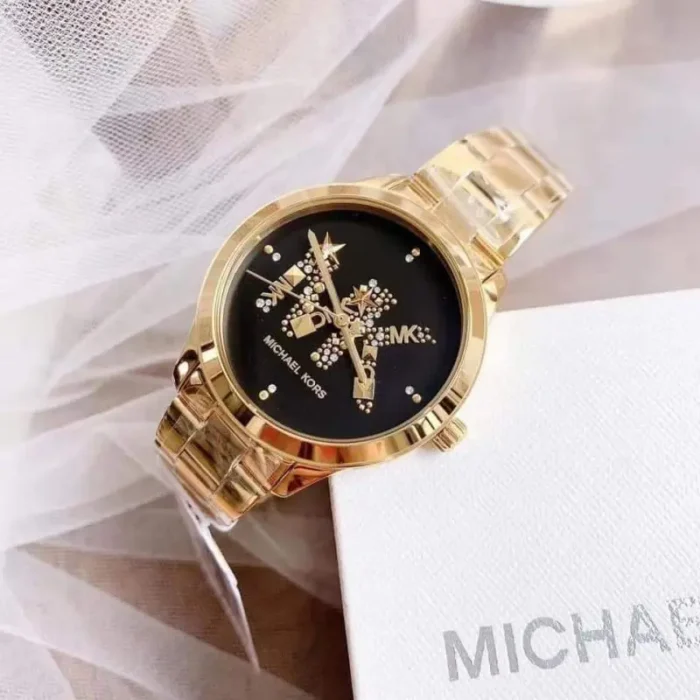 ساعة مايكل كورس للنساء أصلية موديل MK6682 لون اسود و استيك معدن ستانلس لون ذهبي.