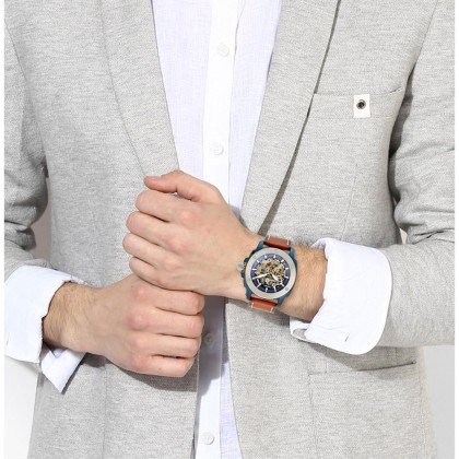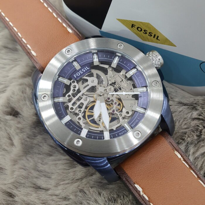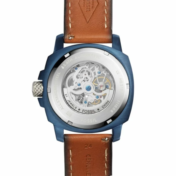 ساعة فوسيل للرجال اصلية موديل (مودرن ماشين) Modern Machine ME3135 لون ازرق واستيك جلد طبيعي لون بنى.