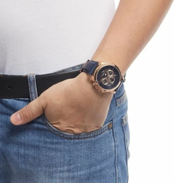 ساعة فوسيل للرجال اصلية موديل Grant ME3029 لون ازرق واستيك جلد طبيعي لون ازرق.