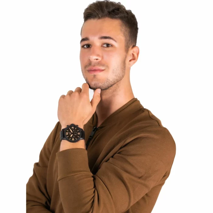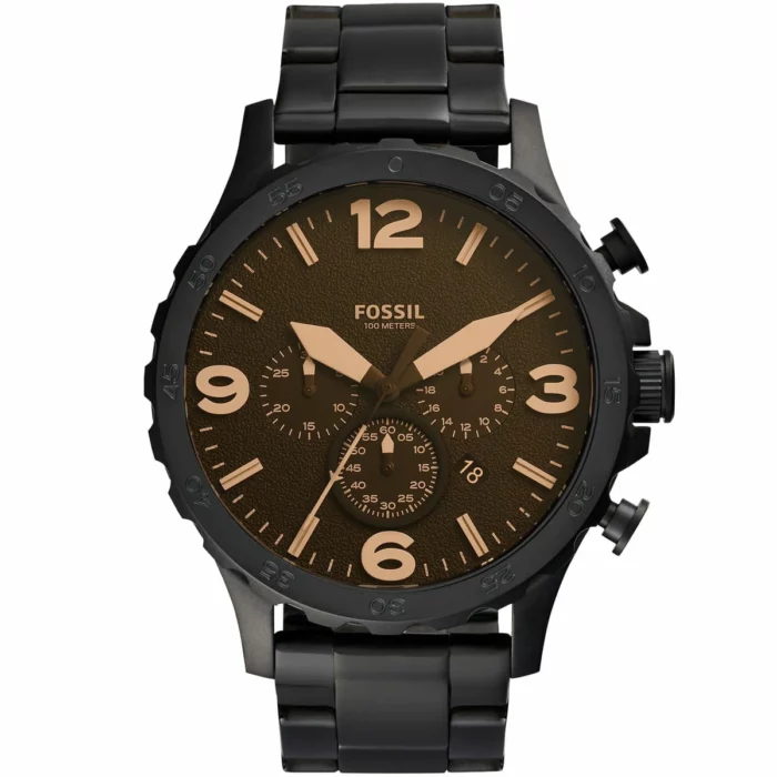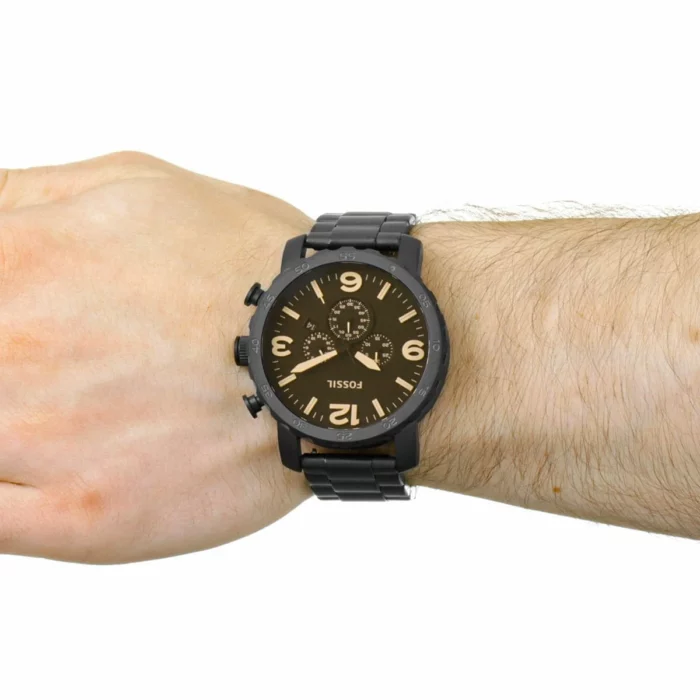 ساعة فوسيل للرجال أصلية موديل (نايت) Nate JR1356 لون اسود و استيك معدن ستانلس لون اسود.