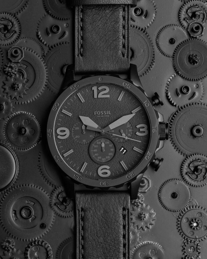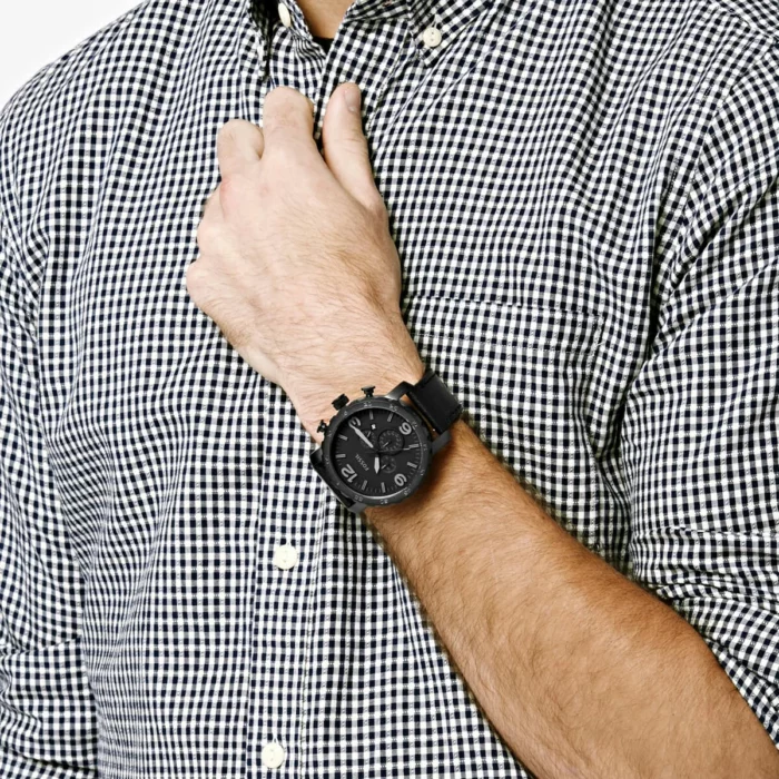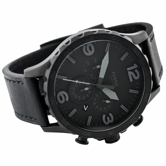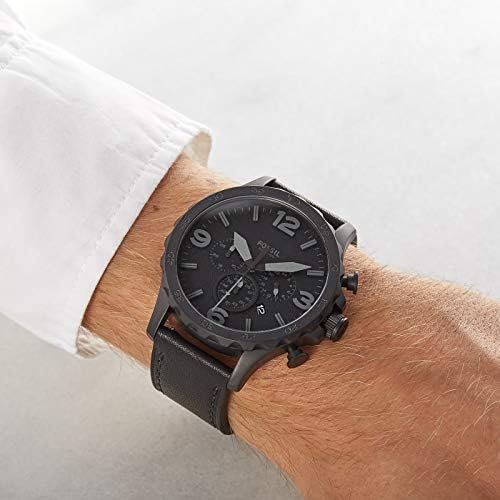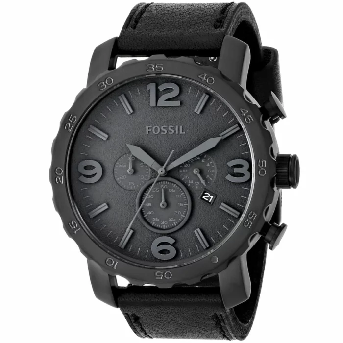 ساعة فوسيل للرجال اصلية موديل Nate JR1354 لون اسود واستيك جلد طبيعي لون اسود.