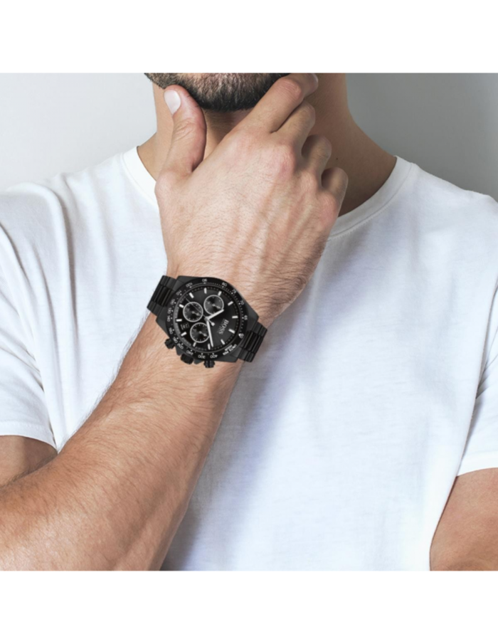 ساعة هوجو بوس للرجال اصلية موديلHero Sport 1513754 لون اسود واستيك معدن ستانلس لون اسود.