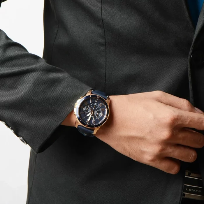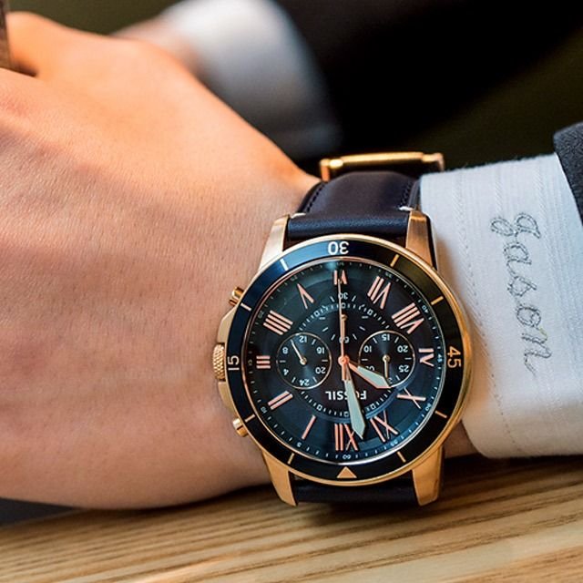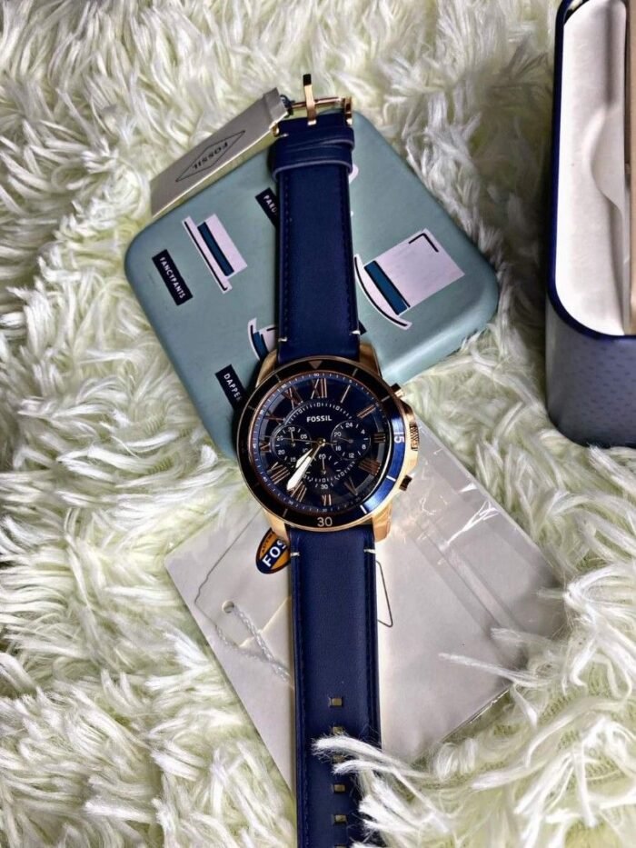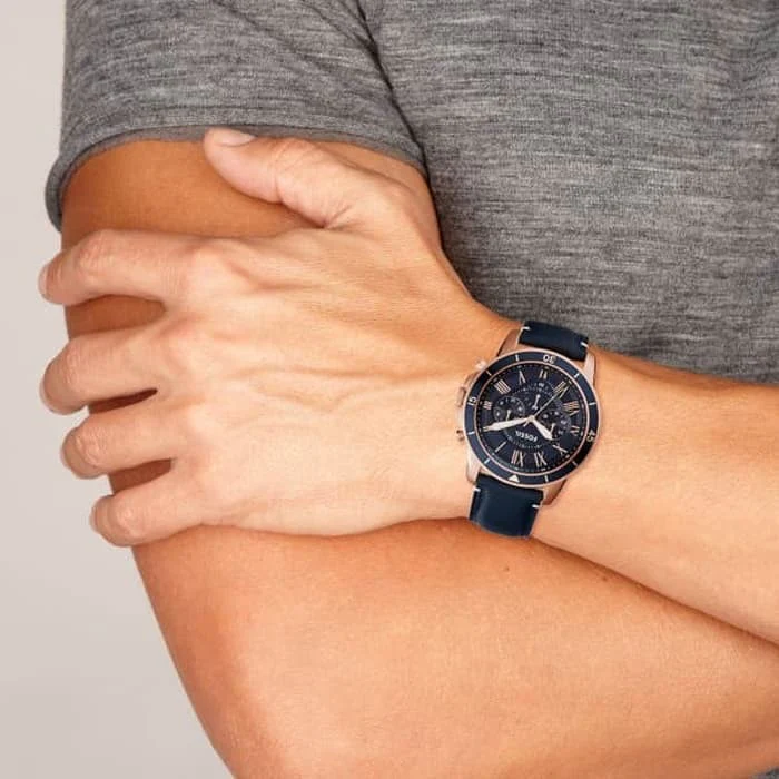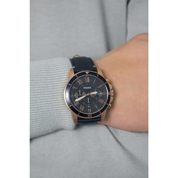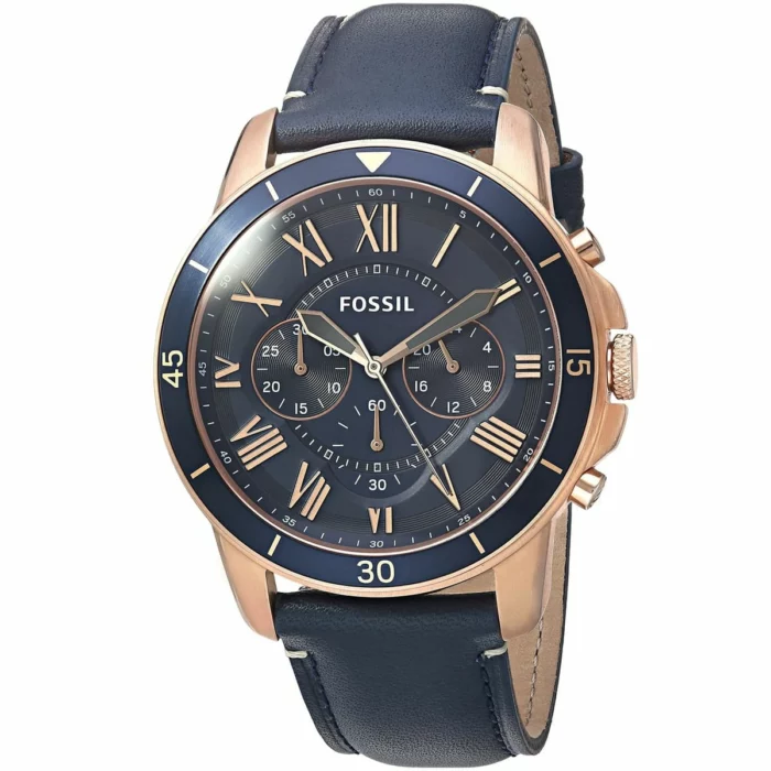 ساعة فوسيل للرجال اصلية موديل Grant FS5237 لون ازرق واستيك جلد طبيعي لون ازرق.