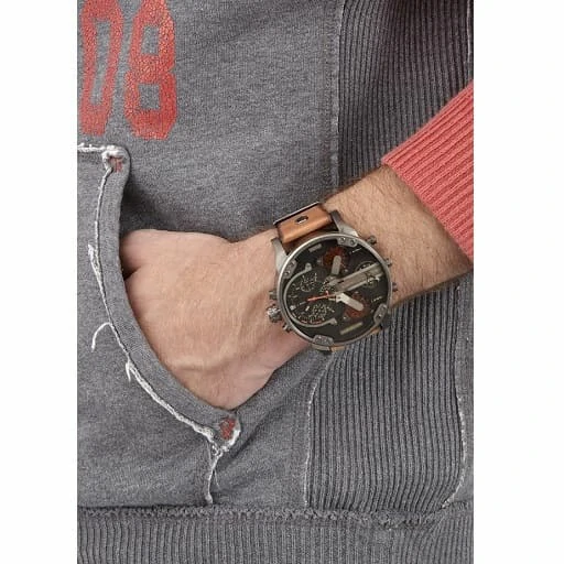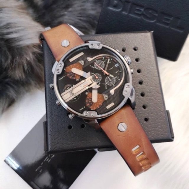 ساعة ديزل للرجال اصلية موديل (مستر دادي) Mr. Daddy DZ7332 لون اسود واستيك جلد طبيعي لون بنى.