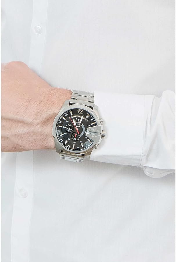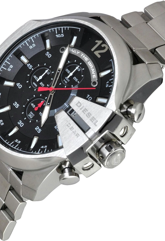 ساعة ديزل للرجال اصلية موديل (ميجا شيف) Mega Chief DZ4308 لون اسود واستيك معدن ستانلس لون فضى.