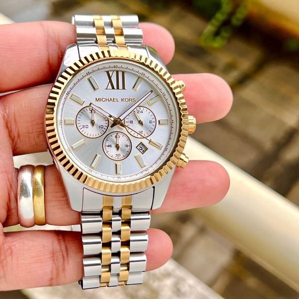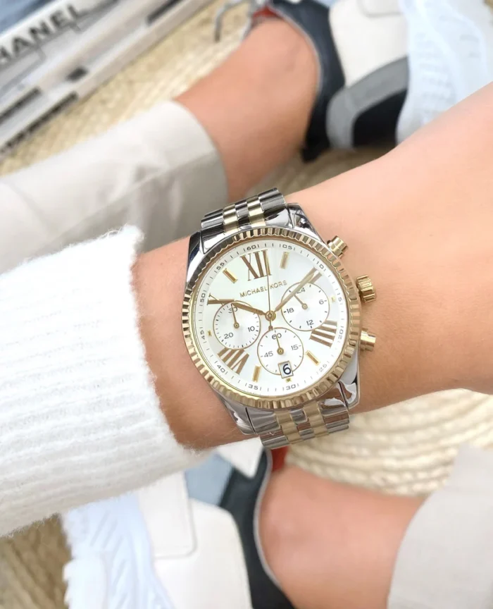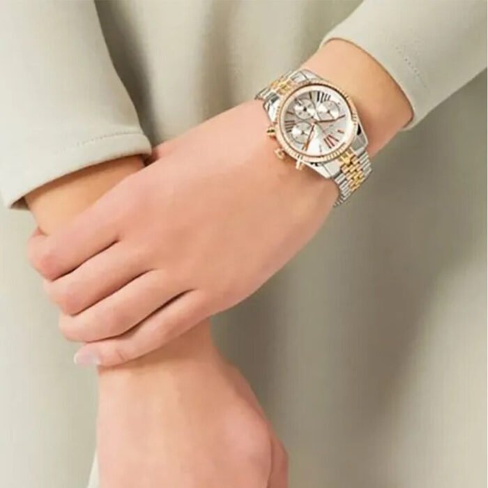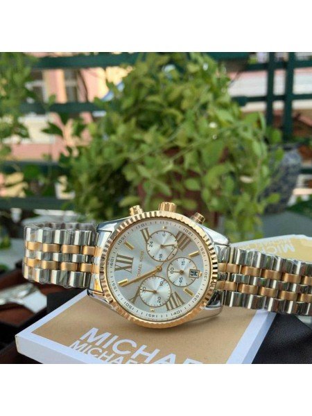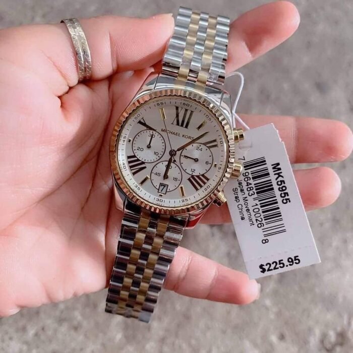 ساعة مايكل كورس للنساء أصلية موديل Lexington MK5955 لون فضي و استيك معدن ستانلس لون فضي * ذهبي.
