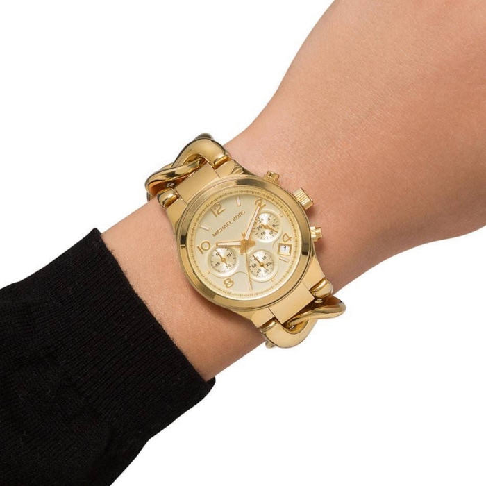 ساعة مايكل كورس للنساء أصلية موديل Runway MK3131 لون ذهبي و استيك معدن ستانلس لون ذهبي.