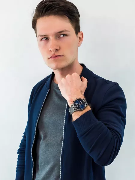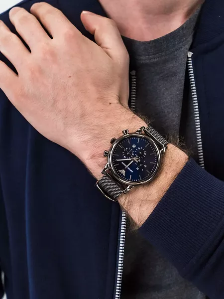 ساعة امبوريو ارماني للرجال اصلية موديل Luigi AR1979 لون ازرق واستيك معدن ستانلس لون رمادي.