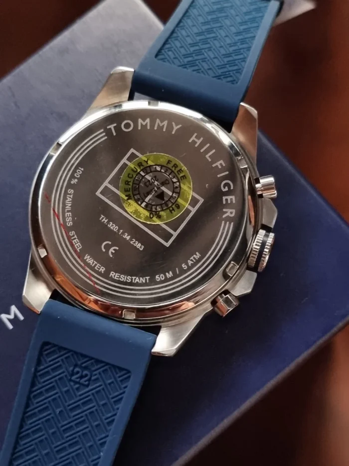 ساعة تومي هيلفيغر للرجال اصلية موديل Decker 1791476 لون ازرق واستيك سيليكون مطاط لون ازرق