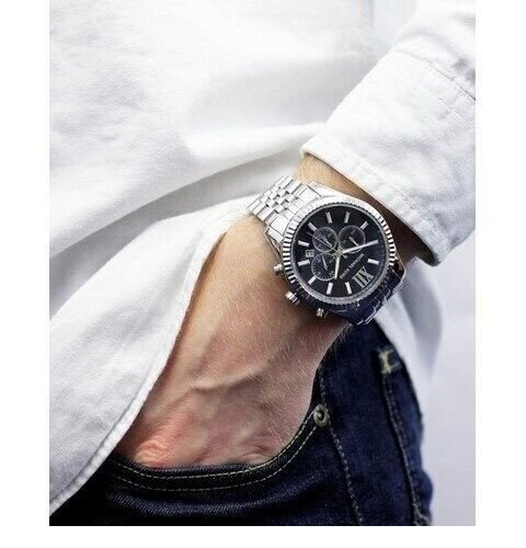 ساعة مايكل كورس للرجال أصلية موديل MK8280 لون ازرق و اوستيك معدن ستانلس لون فضي.