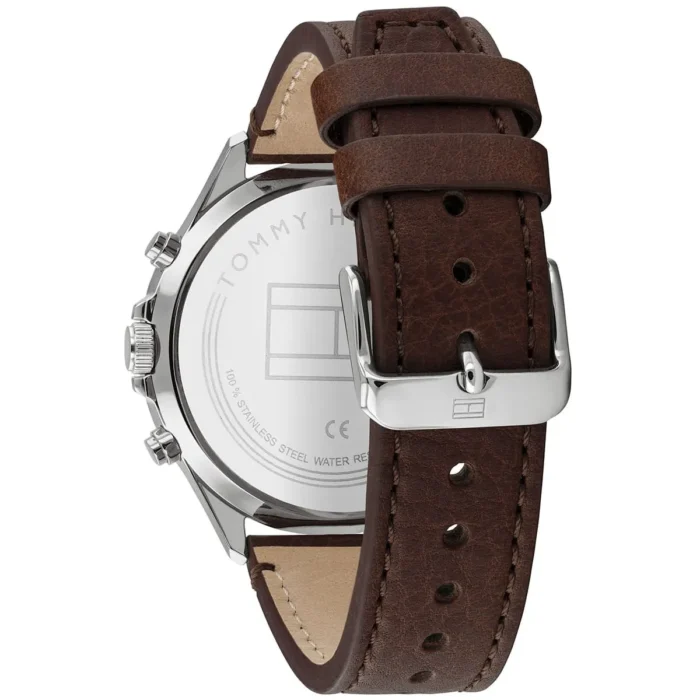 ساعة تومي هيلفيغر للرجال أصلية 1791712 لون ازرق و استيك جلد طبيعي لون بني.