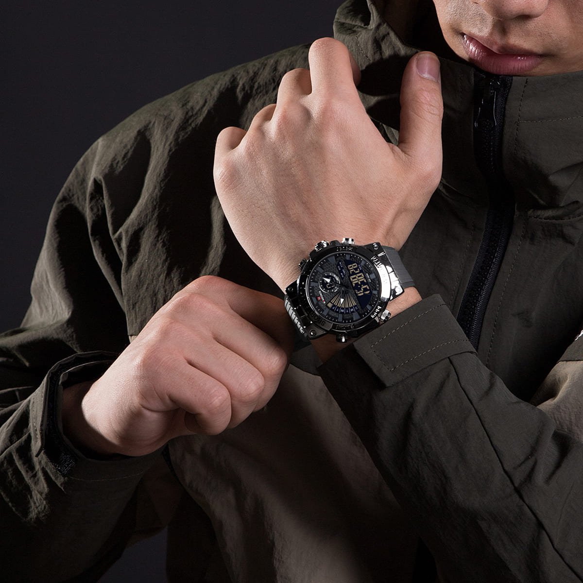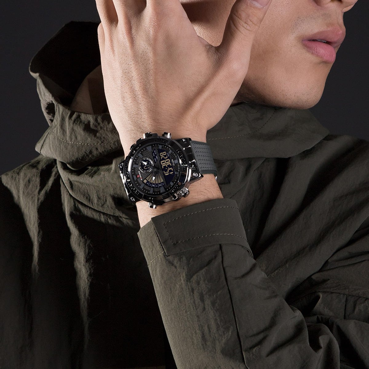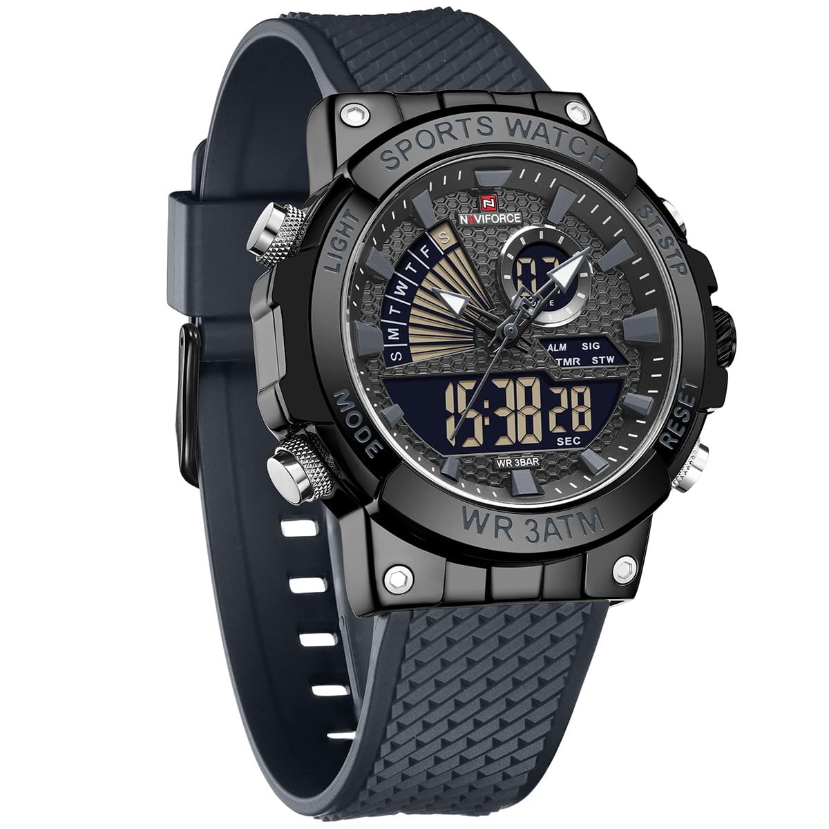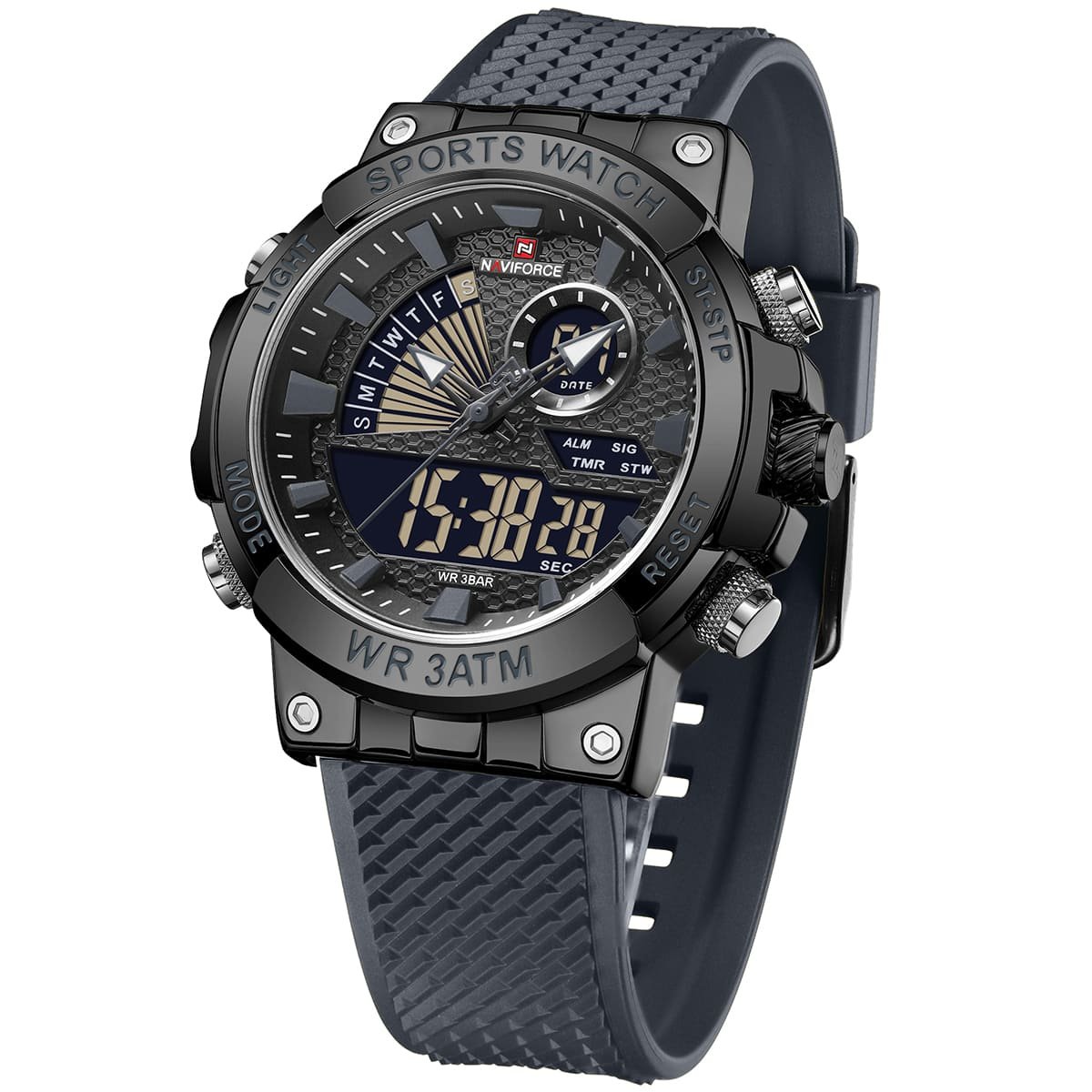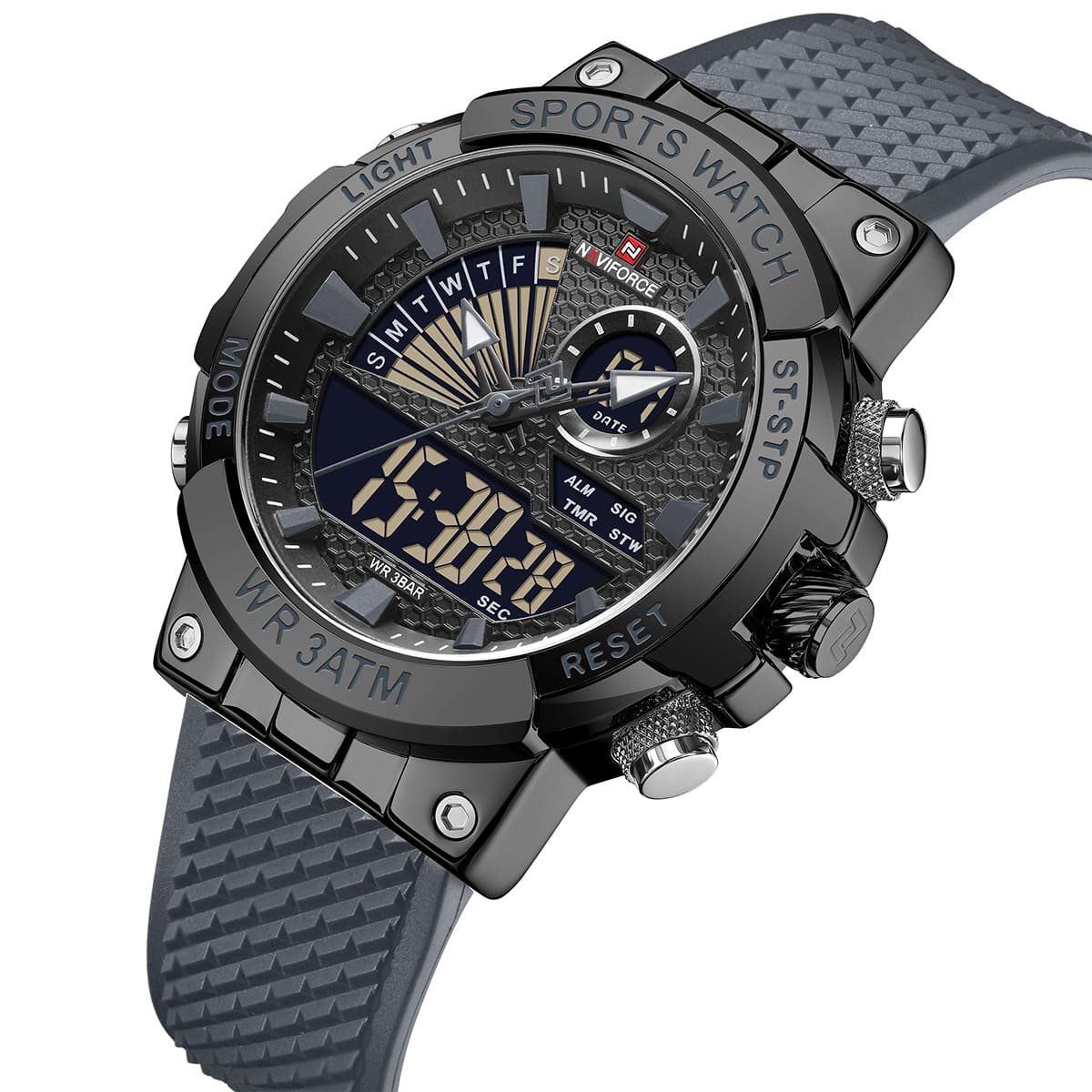 ساعة يد نافي فورس Naviforce NF 9219 B GY GY رجالي أصلية موديل ( NF9219 ) نظرية و رقمية WR 3BAR بلون رمادي و استيك سيليكون مطاط بلون رمادي احصل عليها الآن من SAN CAN للساعات – SAN CAN Watches