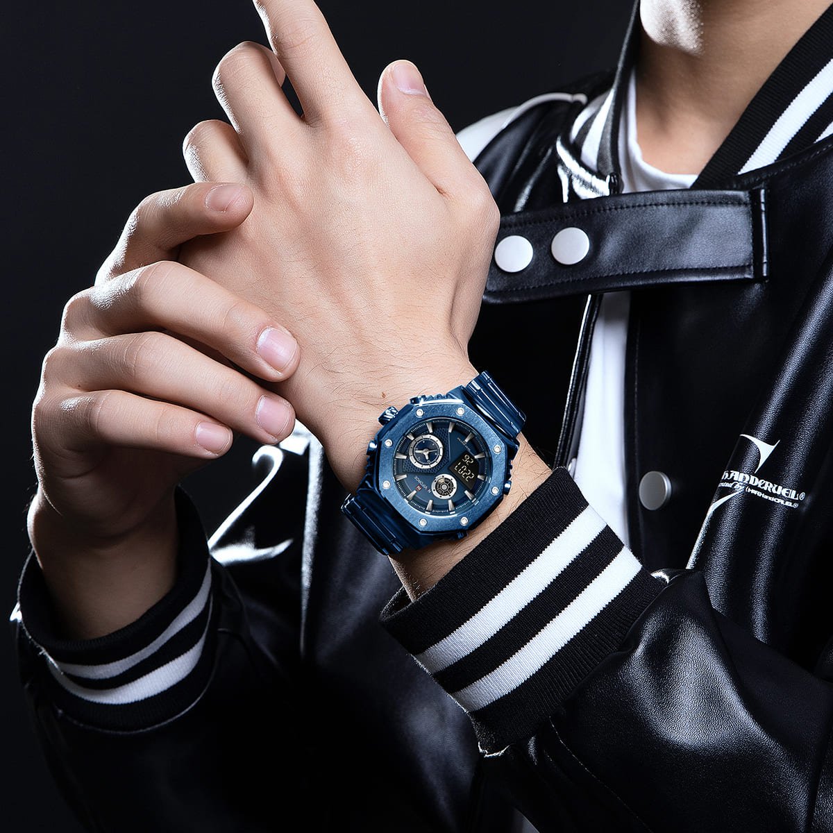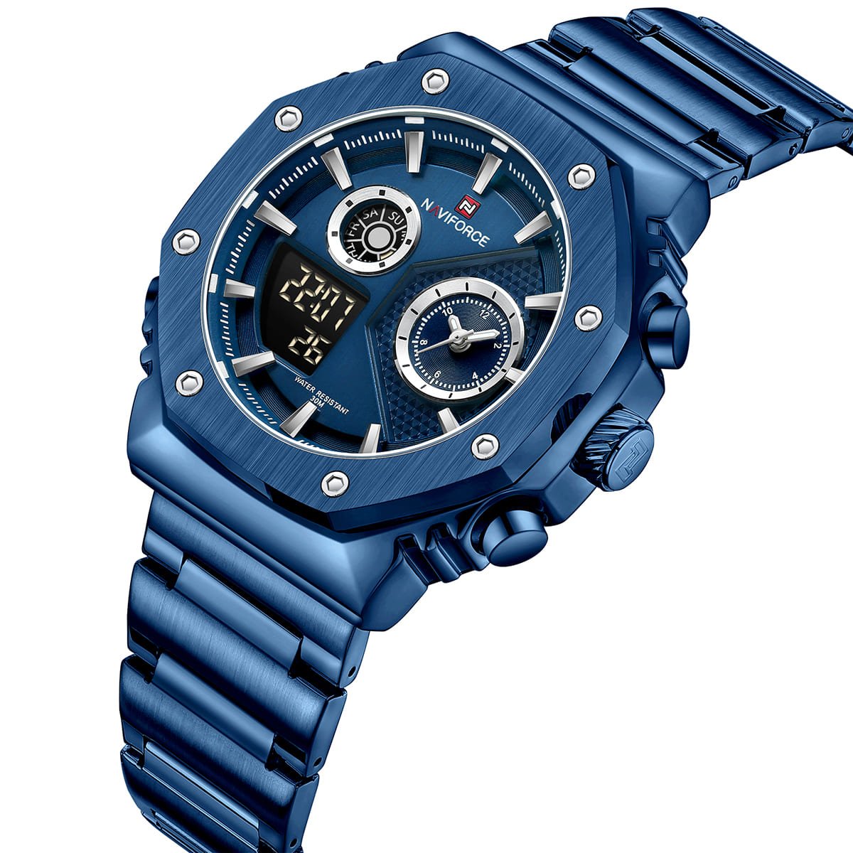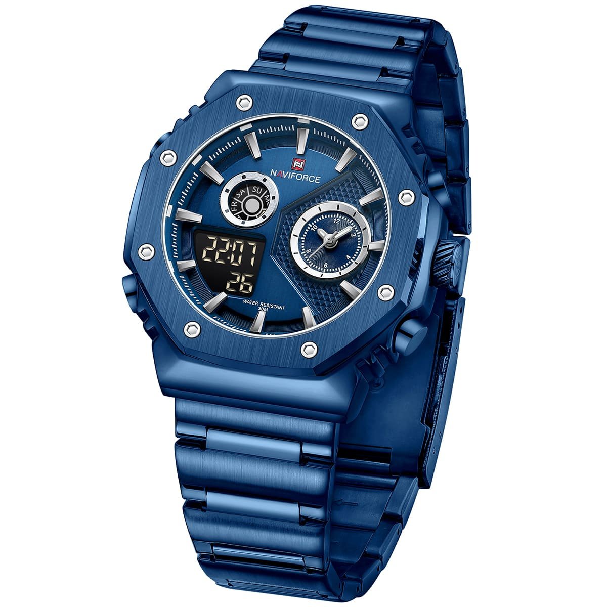 ساعة يد نافي فورس Naviforce NF 9216S BE BE رجالي أصلية موديل ( NF9216S ) نظرية و رقمية Water Resistant-30M بلون ازرق و استيك ستانلس ستيل بلون ازرق احصل عليها الآن من SAN CAN للساعات – SAN CAN Watches